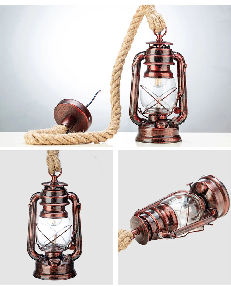 Винтажная керосиновая Подвесная лампа с бесплатной лампой E27 пеньк...