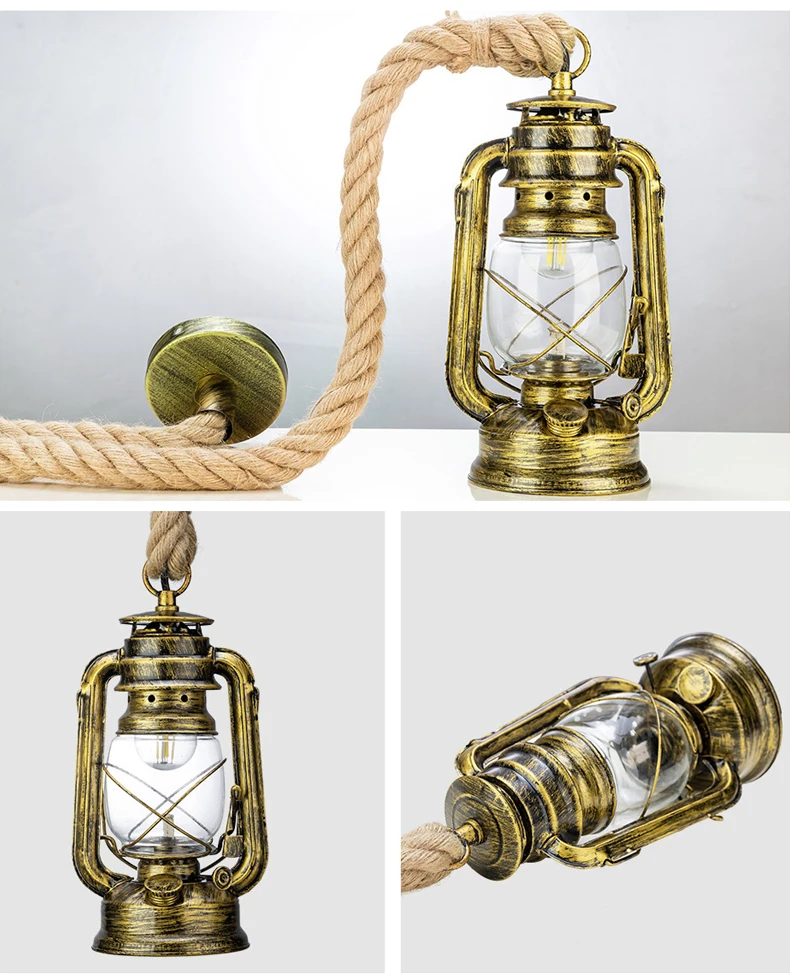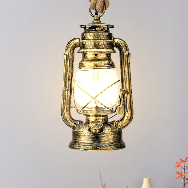Американский Ретро кантри пеньковая веревка керосиновый подвесной светильник личные подвесные лампы для балкона Ностальгический подвесной фонарь
