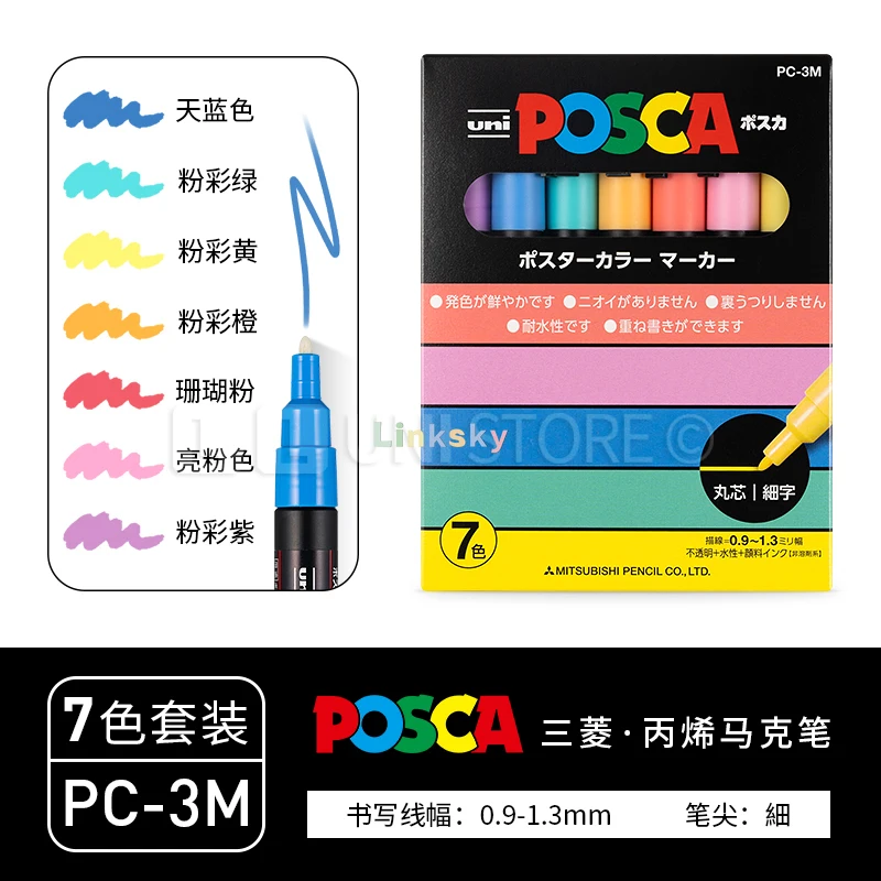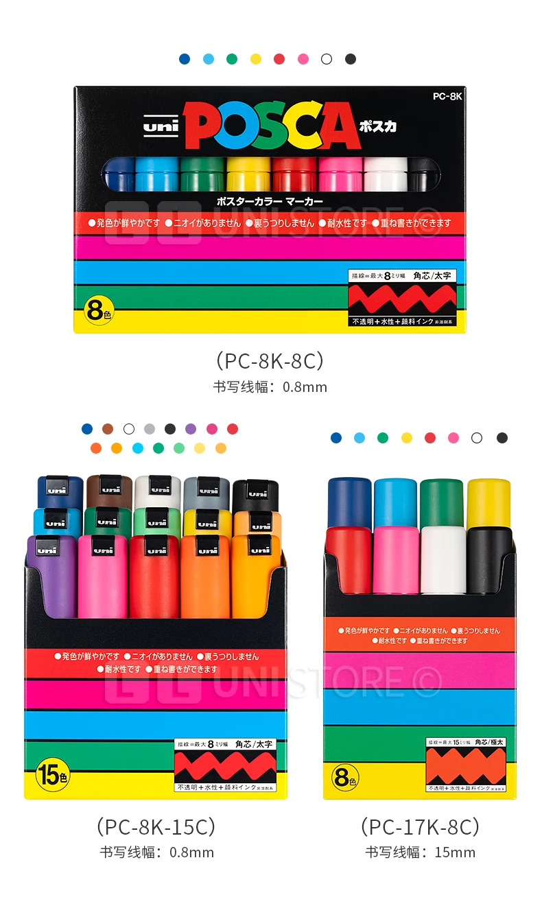 Маркер Uni-posca для красок-точка-набор цветов 7/8/15, 0,9-1,3 мм, пигмент на водной основе, нетоксичный, легкий и водостойкий