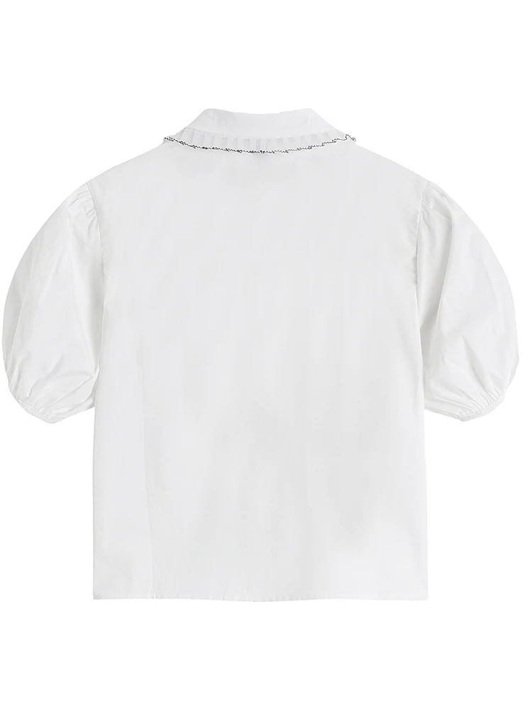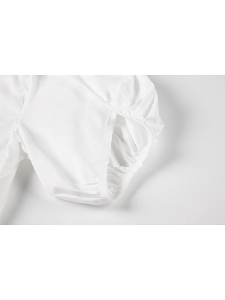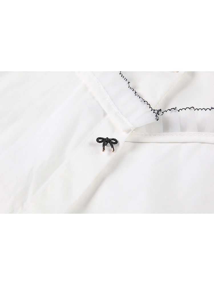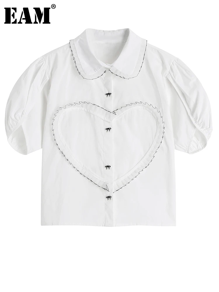 EAM Женская белая винтажная Блузка с оборками, новая свободная рубашка с отворотом и рукавом до локтя, модная весенне-летняя 2022 1DE0313