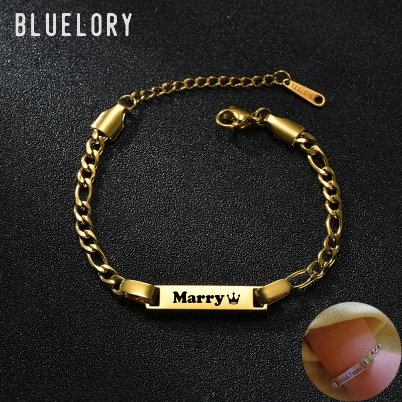 Bluelory по заказу покупателя нержавеющая сталь Выгравировано Название ID бар детский браслет для мальчиков и девочек ребенок по индивидуальному заказу, ювелирные изделия, подарок ко дню рождения