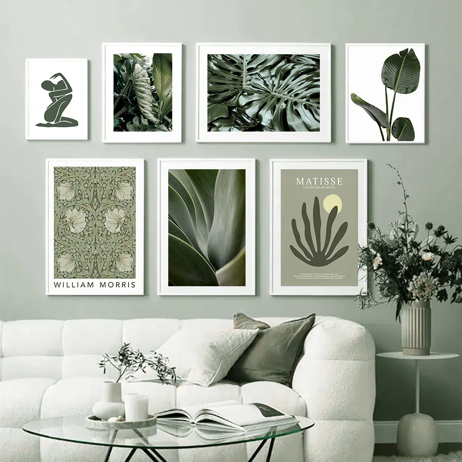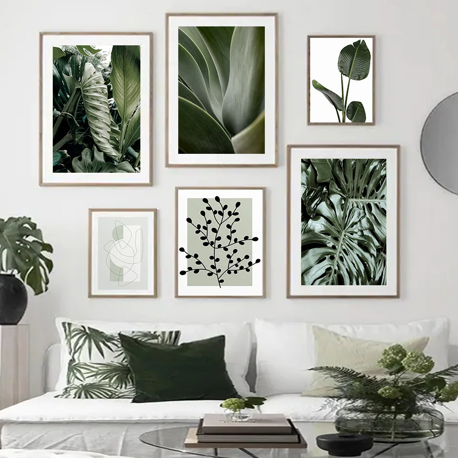 Monstera, зеленые растения, листья Матисса, Женская настенная Карти...