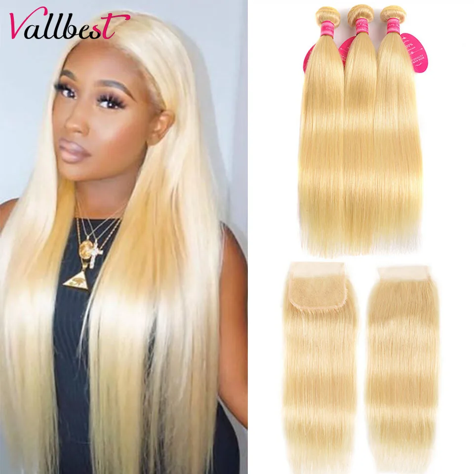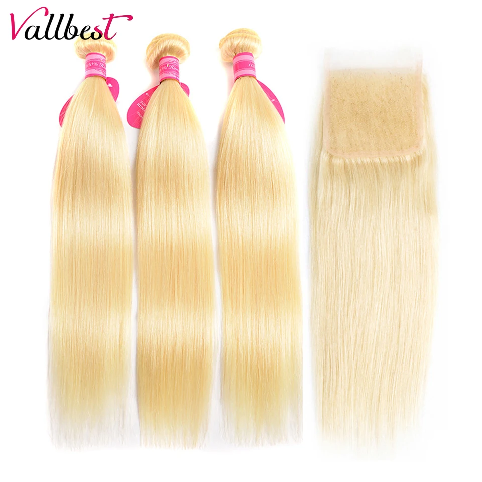 Vallbest 613 светлые прямые волосы пряди с закрытием бразильские человеческие волосы пряди с закрытием кружева с детскими волосами Волосы Remy