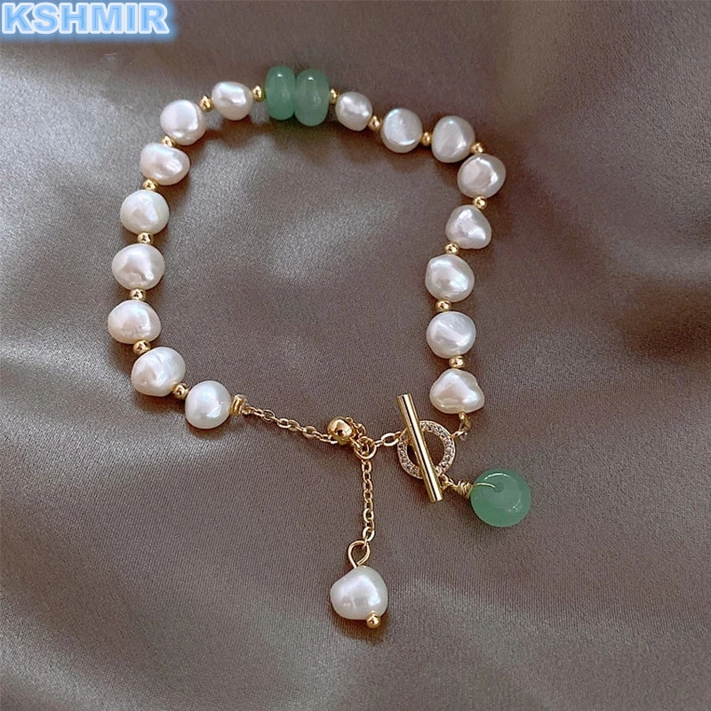 Роскошный Жемчужный браслет в стиле барокко с зелеными кристаллами, корейская бижутерия, элегантные свадебные аксессуары для девушек, браслеты для женщин
