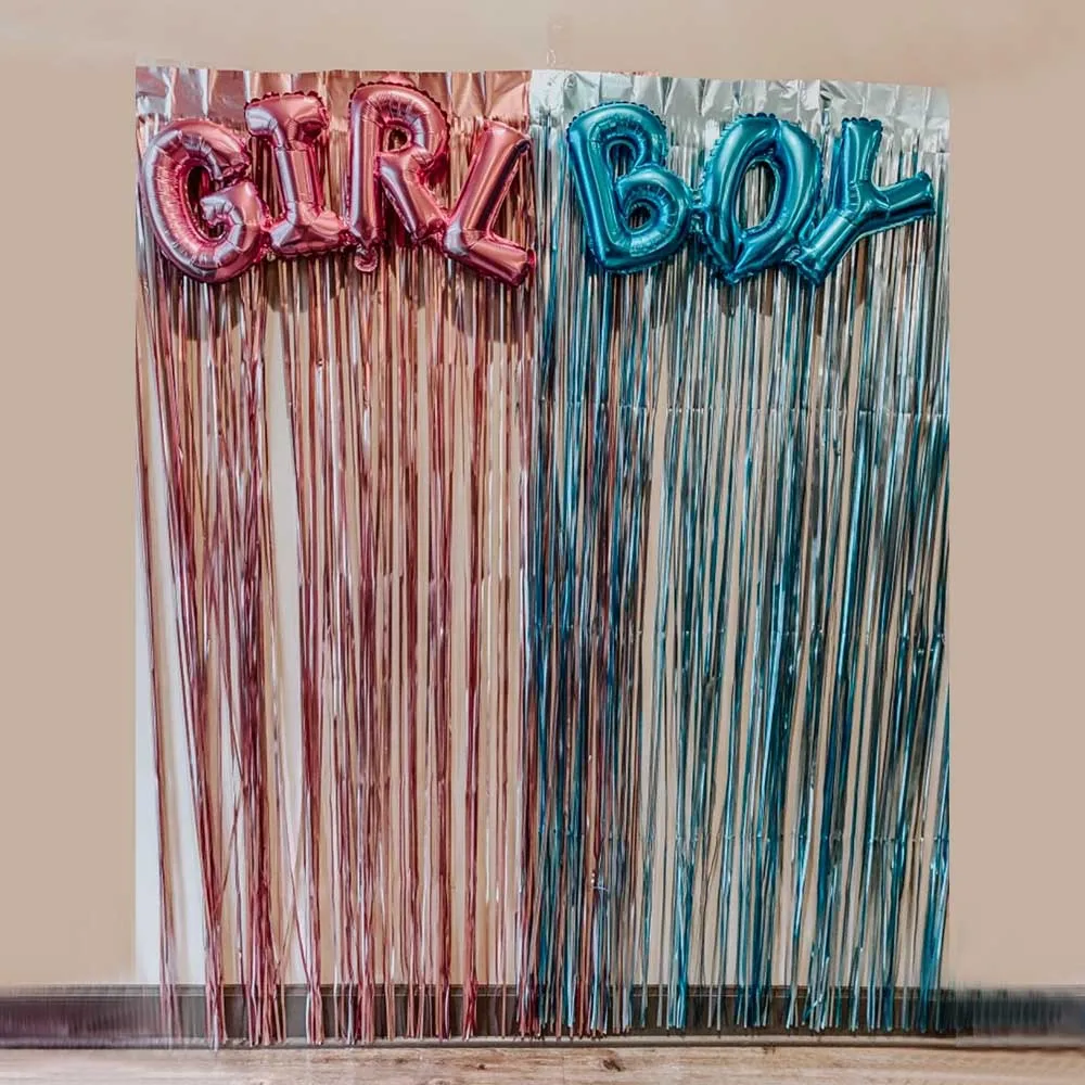 Baby Shower вечерние металлик мишура Fringe шторы, Покупаете ли вы для мальчика или столовая посуда для девочки одноразовые пластины салфетки для стаканчиков Пол раскрыть расходные материалы