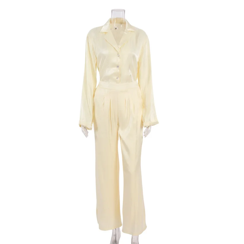 2021 Женская на весенний сезон лето из нового вида искусственного шелка штаны пижама костюм для женщин INS блестящего атласа Забавный костюм, состоящий из футболки и брюки; Комплект из двух предметов для отдыха Стиль