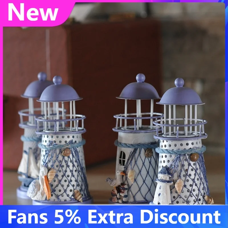 Новинка креативные подсвечники Средиземноморский Маяк Железный Подсвечник синие белые подсвечники стойка для свечей домашний декор для стола