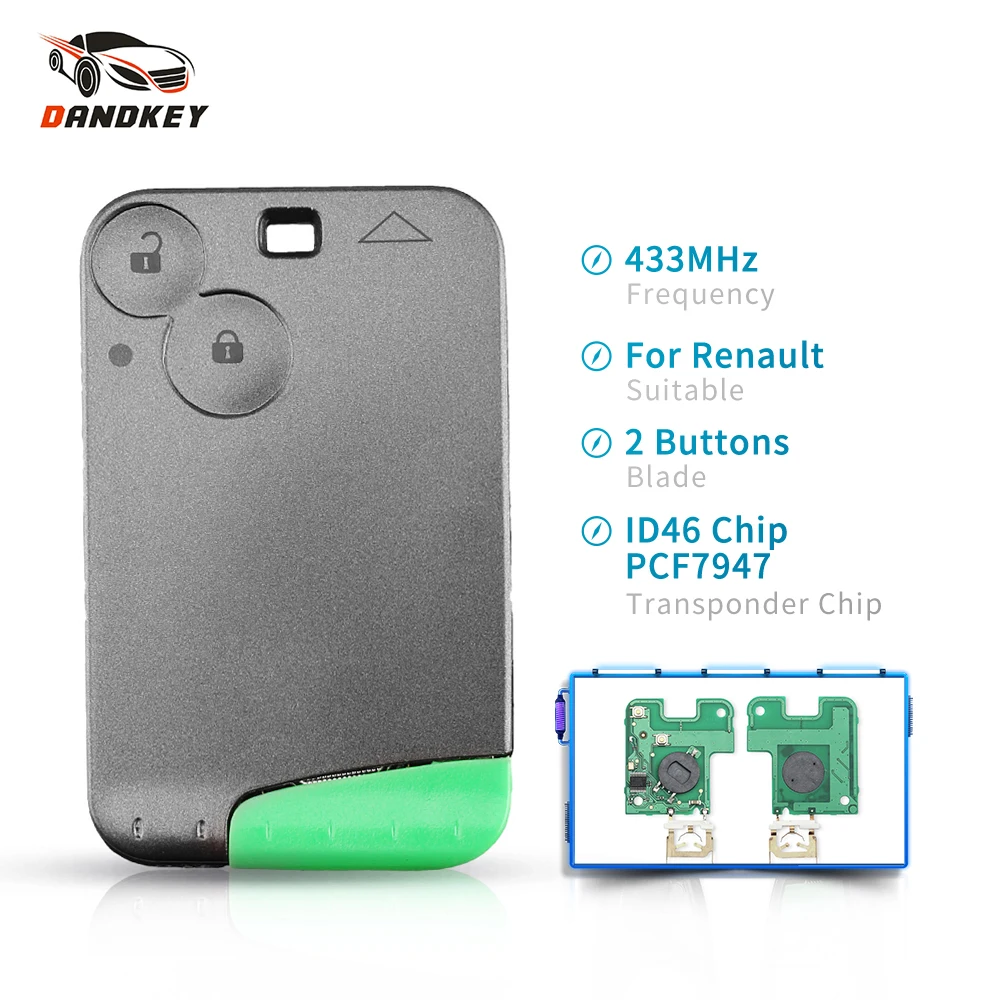 Смарт-карта Dandkey, 2 кнопки, пульт дистанционного управления 433 МГц, чип транспондера PCF7947 ID46 для Renault Laguna Espace Fob, автостайлинг