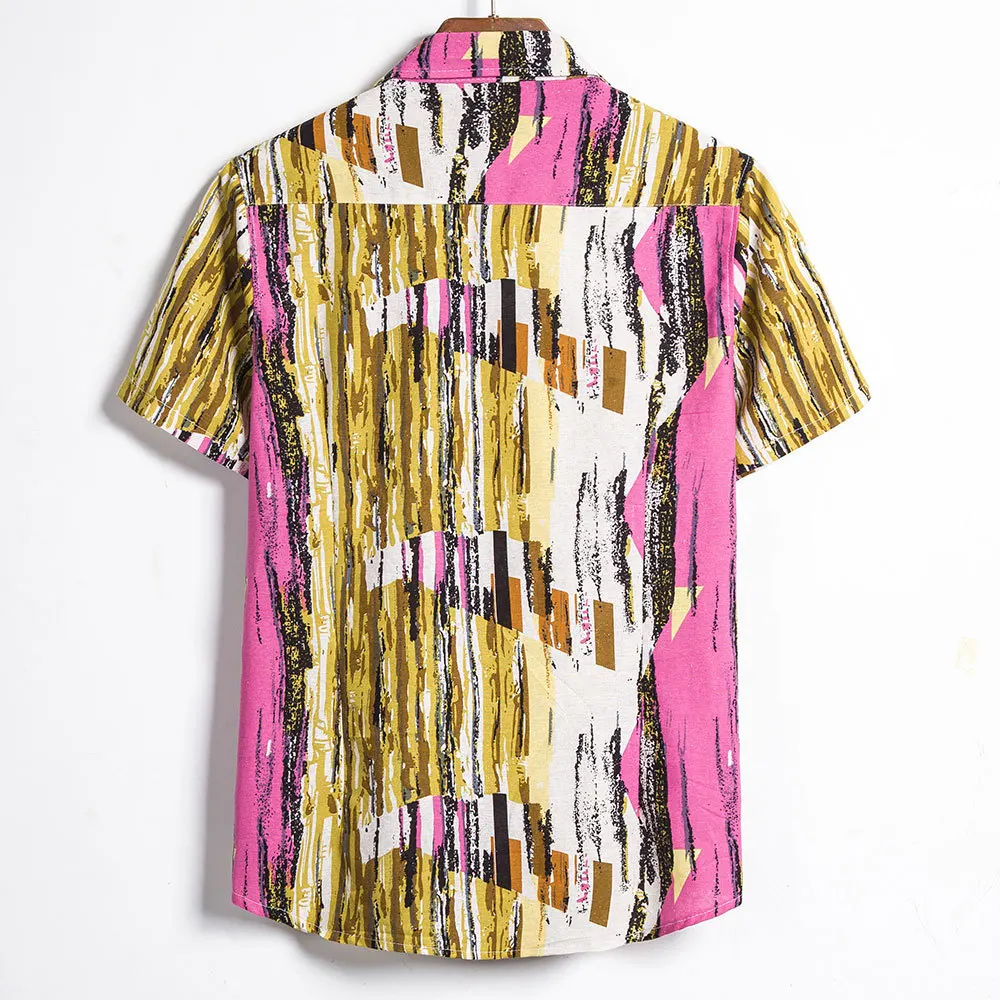 2021 летние Винтаж рубашка для Для мужчин кардиган с коротким рукав...
