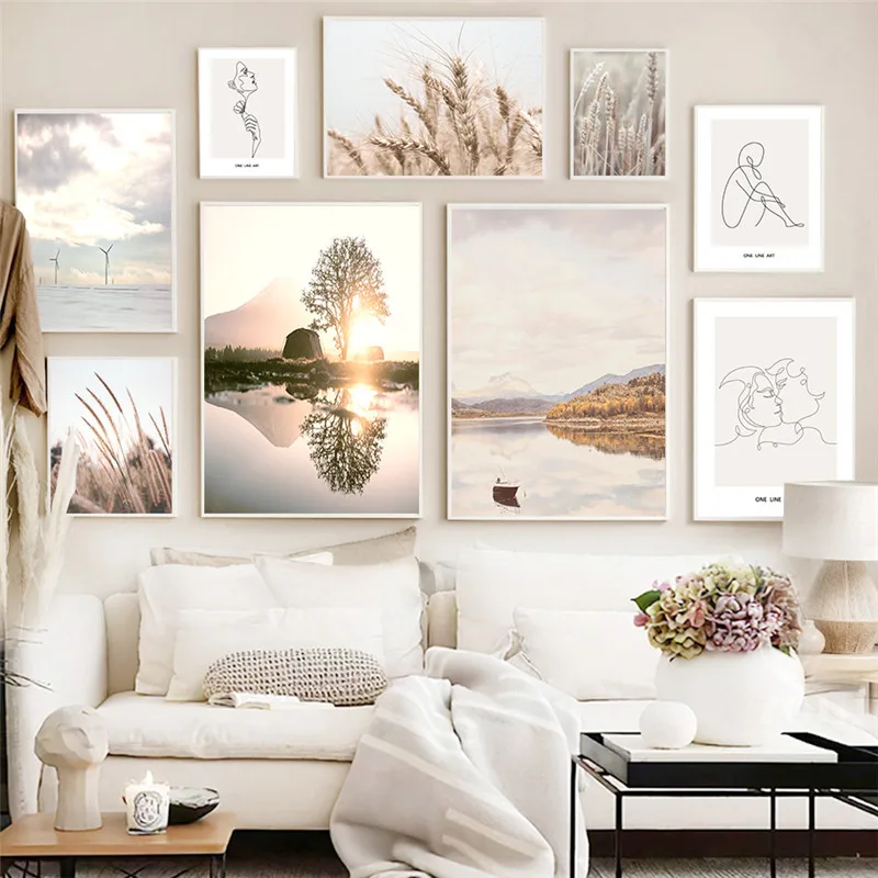 Пейзаж природы, плакат, настенное искусство, холст, живопись, Beigh...