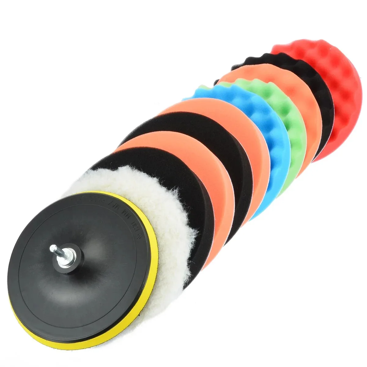 11 шт.компл. 3 дюймов диск автомобильного полировщика самоклеящаяся полировка воском губки шерстяное колесо полировальные подложки для полировальная машинка для автомобилей с эксцентриковым, адаптер для дрели