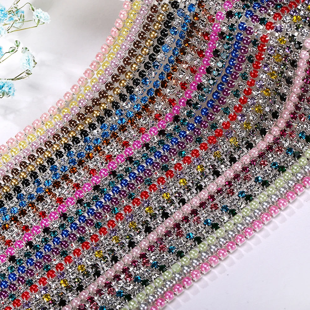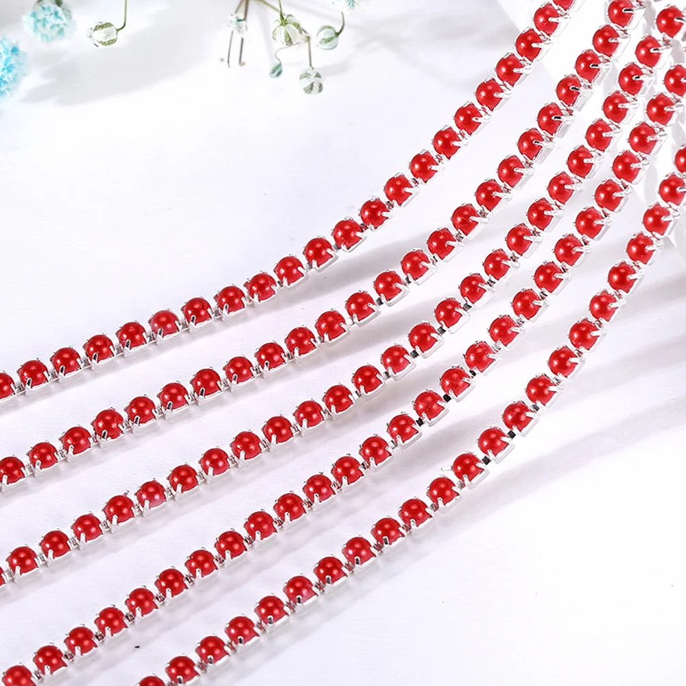 Новинка! Цепочка Стразы с красным жемчугом, Серебряные стразы с плоским основанием, отделка кристаллами для рукоделия сделай сам, швейная отделка, рукоделие, вышивка, Декор