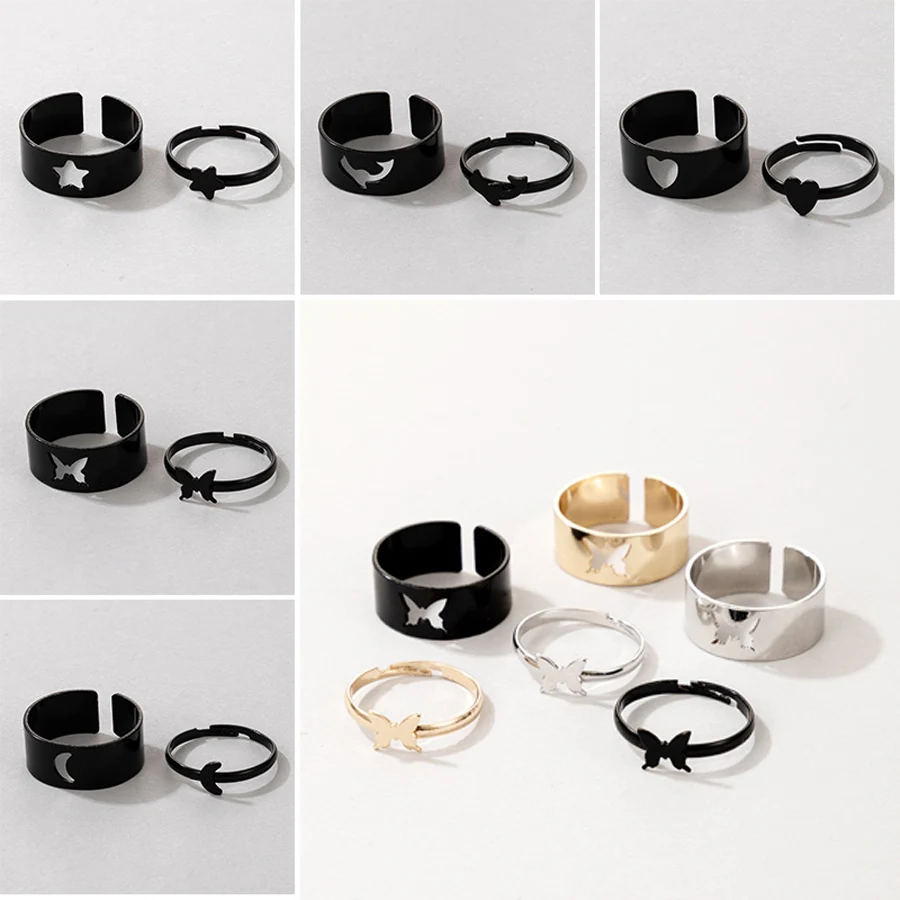 2 шт./компл. полые бабочки Сердце Дельфин Кольца для мужчин и женщин парные кольца для влюбленных набор дружбы помолвки Свадебные Открытые Кольца 2021 ювелирные изделия
