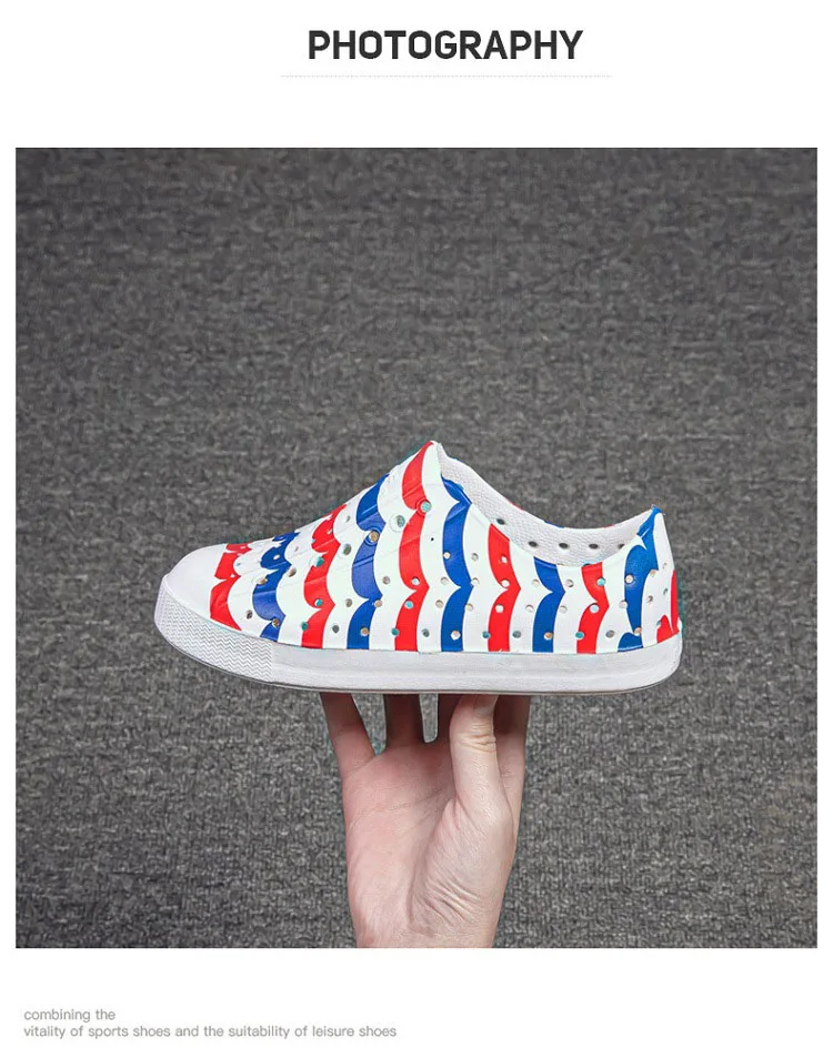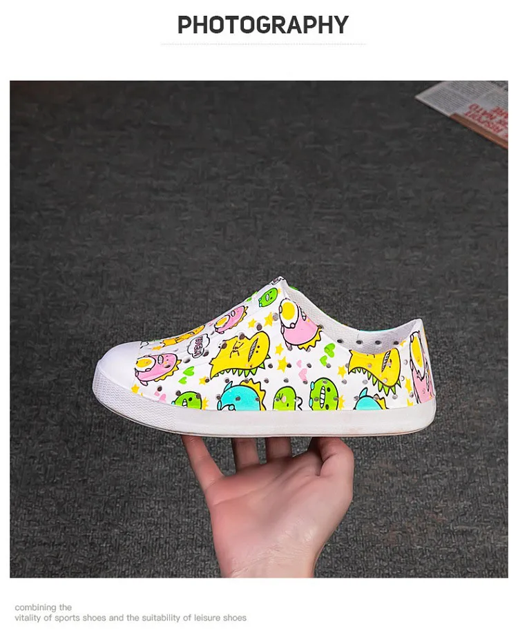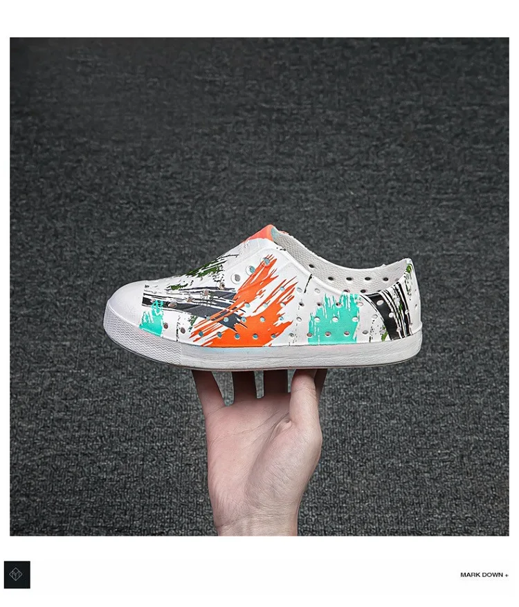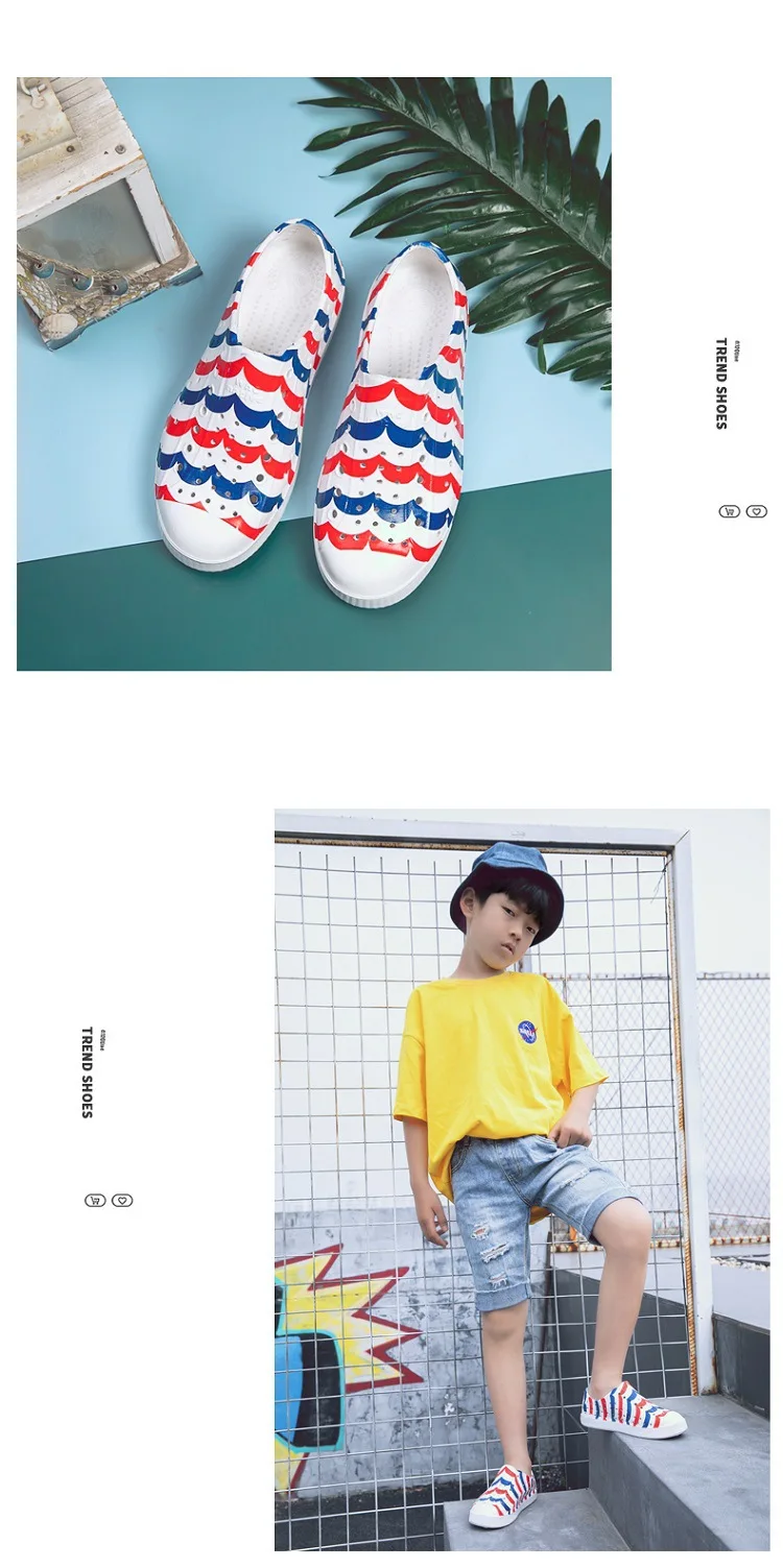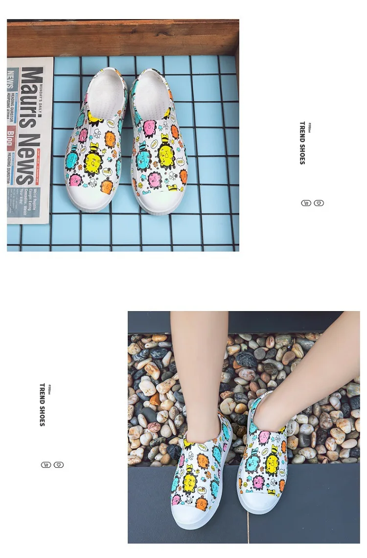 Сандалии для девочек и мальчиков с принтом, Эва, летняя детская обувь, с перфорацией, без застежки, Пляжная удобная мягкая нескользящая обувь для детей