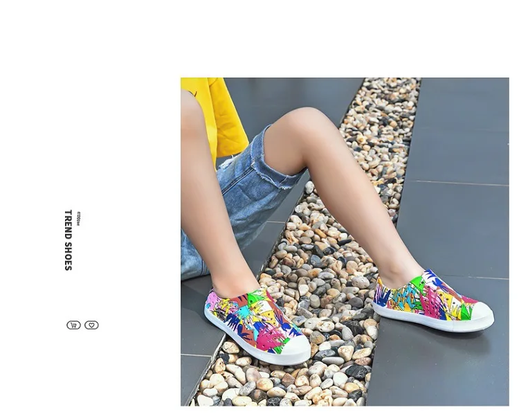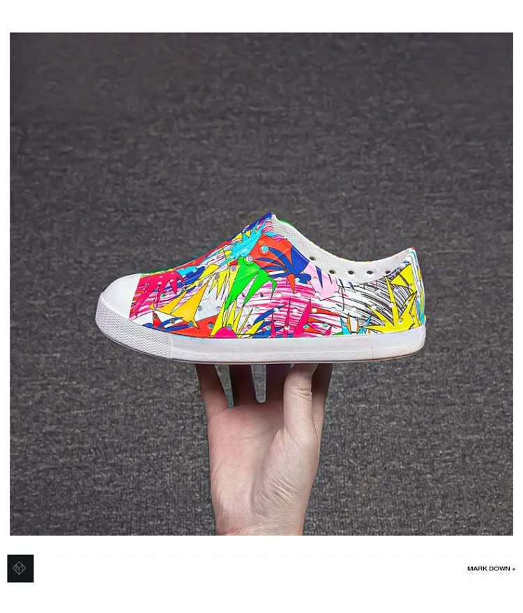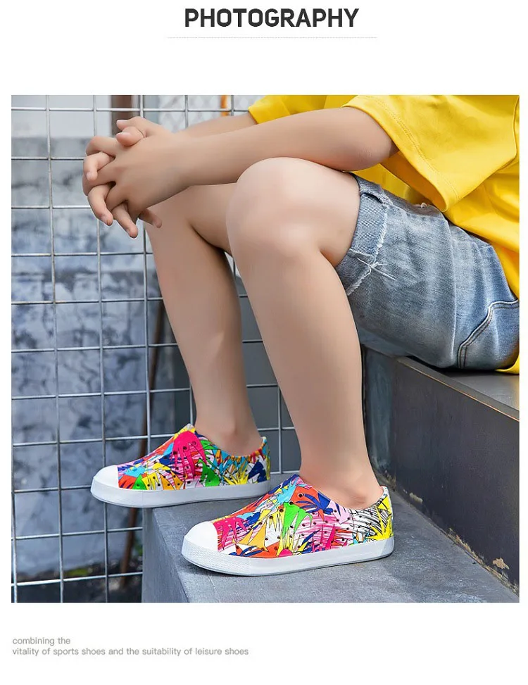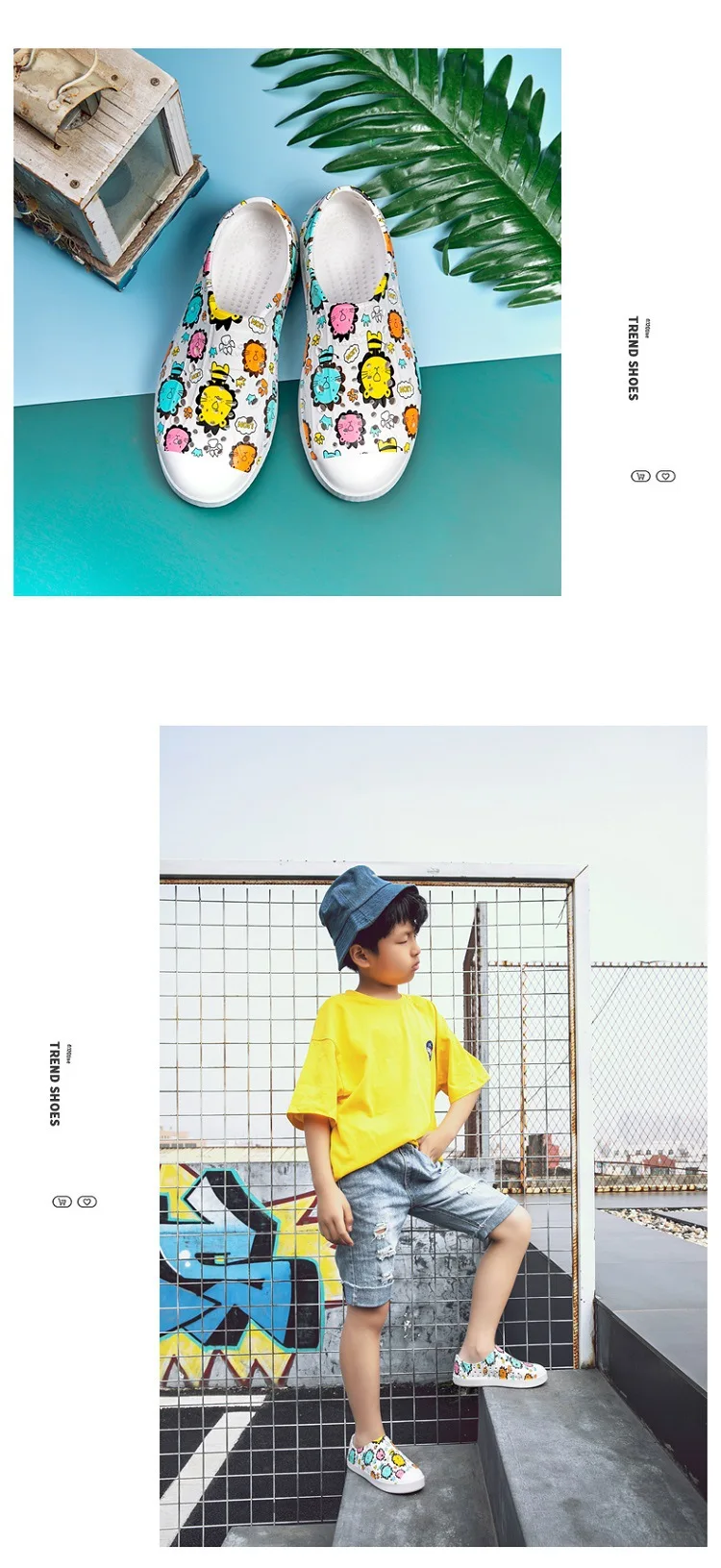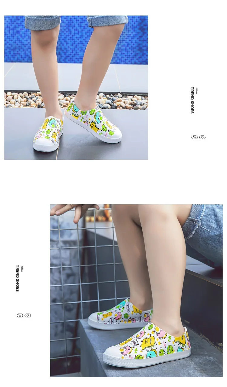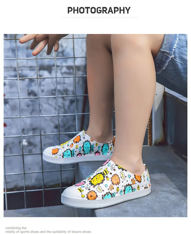 Сандалии для девочек и мальчиков с принтом, Эва, летняя детская обувь, с перфорацией, без застежки, Пляжная удобная мягкая нескользящая обувь для детей