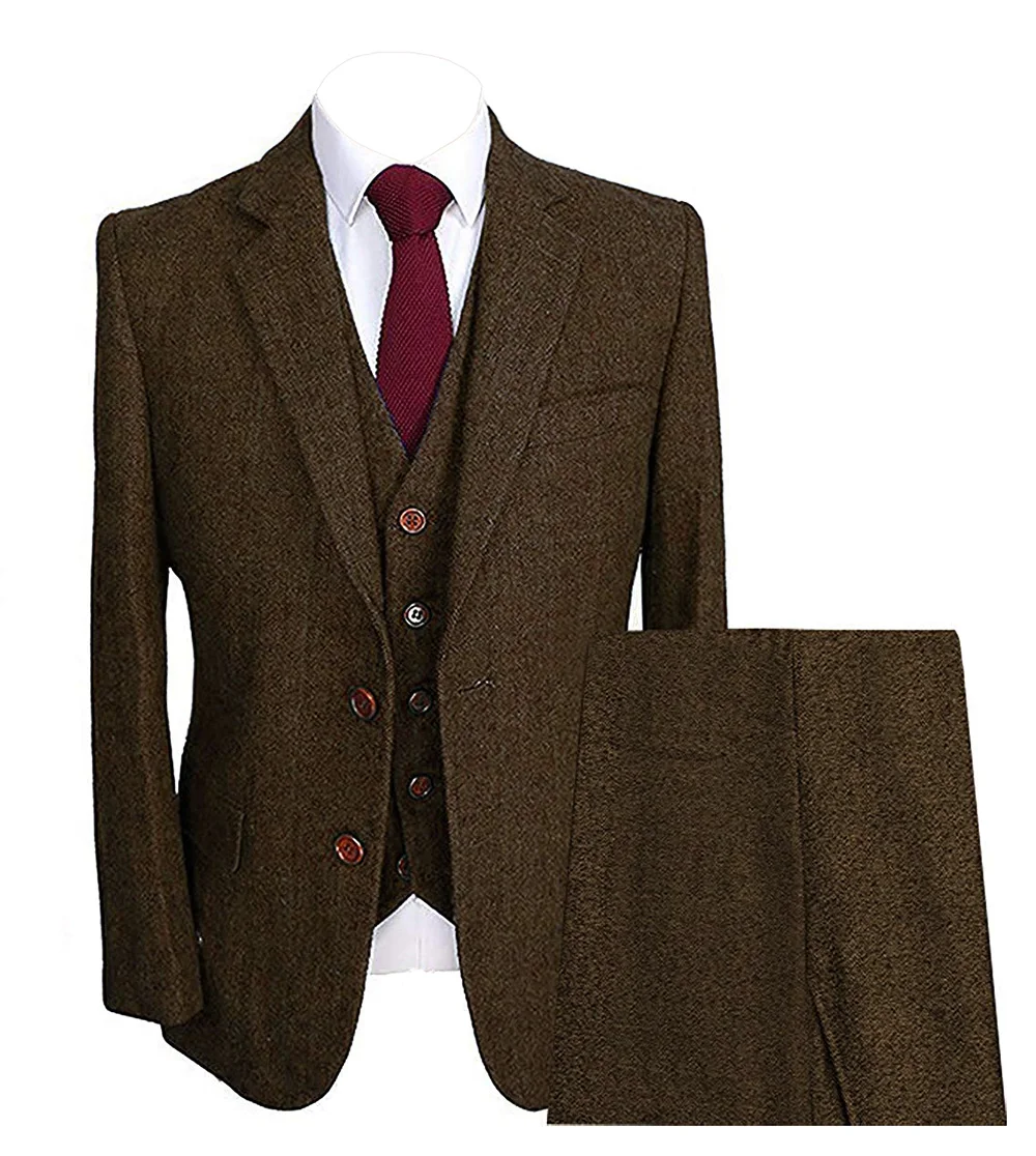 Костюм мужской из 3 предметов, официальные смокинги в елочку, с лацканами, с вырезом, классический размер, Зимний свадебный костюм для жениха (Блейзер + жилет + брюки)