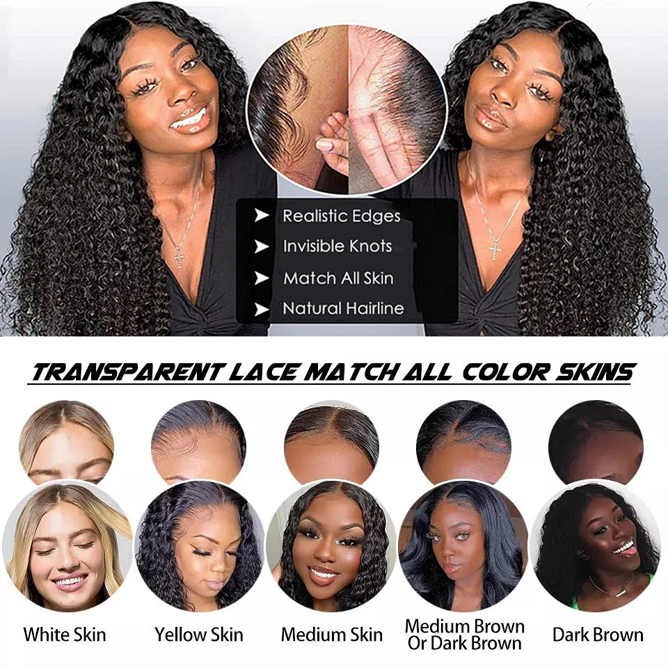Парик из натуральных волос, прозрачный, малазийские кудрявые, 180% 13X4