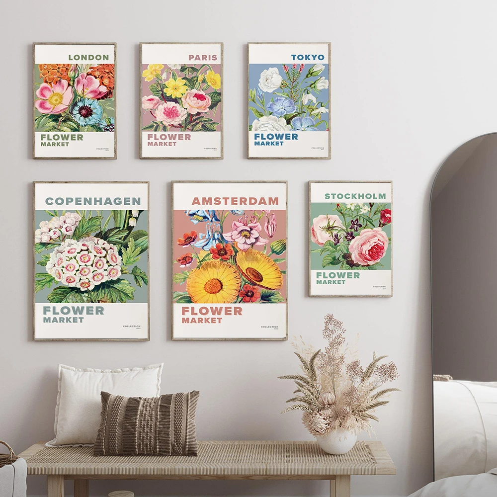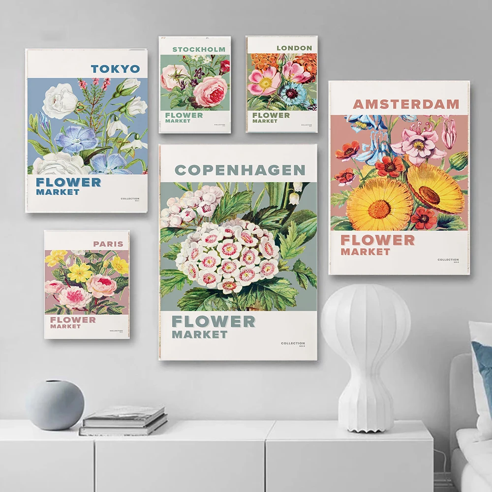 Цветочный рынок настенная живопись на холсте Лондонский Токийский цветочный постер печать для скандинавских гостиной цветочный Декор для дома