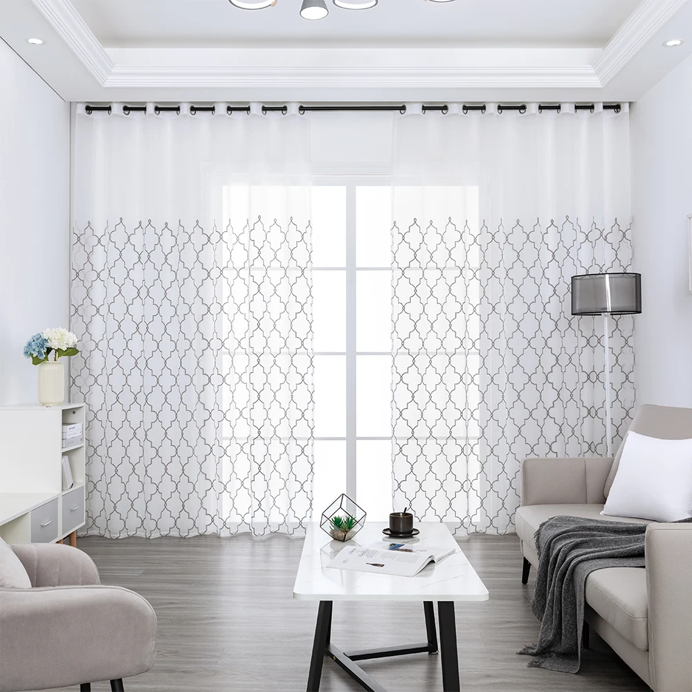 Прозрачные шторы LISM с геометрической вышивкой, тюлевые занавески ...