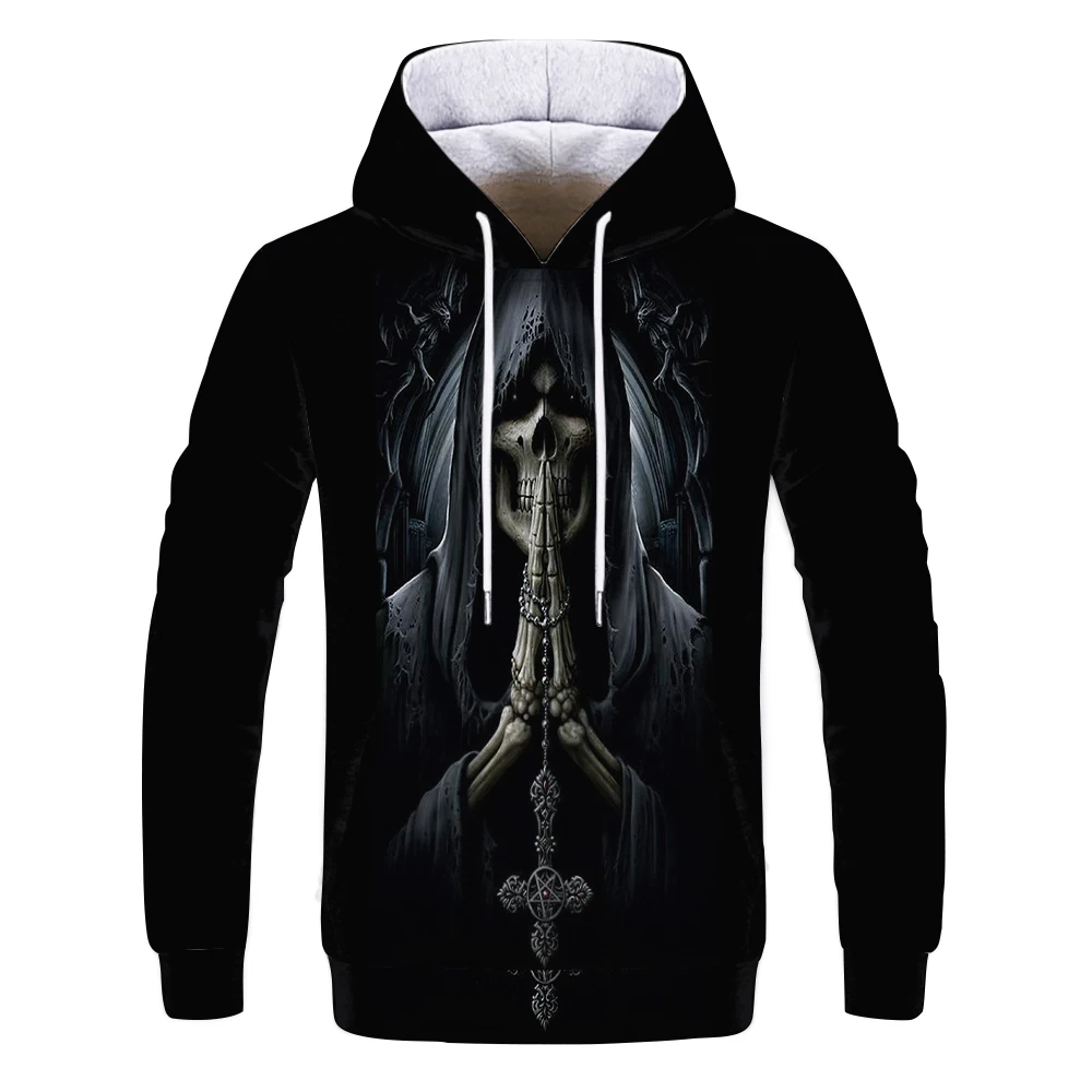 Толстовка мужская с 3D-принтом черепа, черная уличная одежда, пулов...