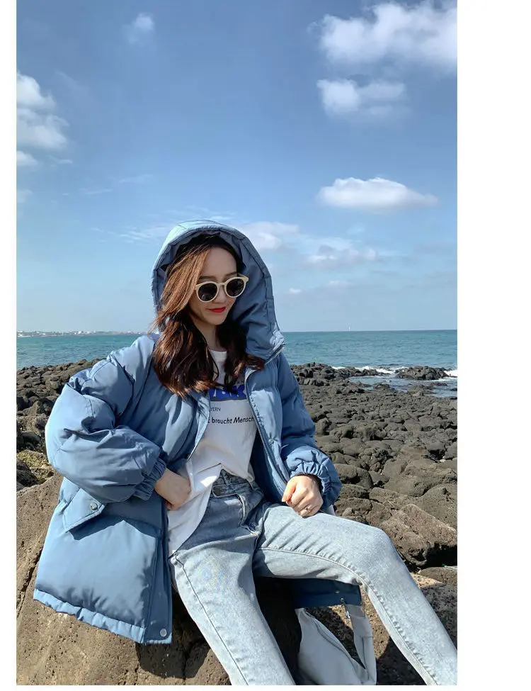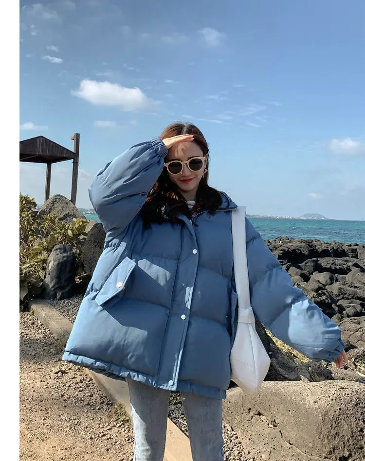 Женские зимние куртки-пуховики оверсайз, корейские свободные пальто...