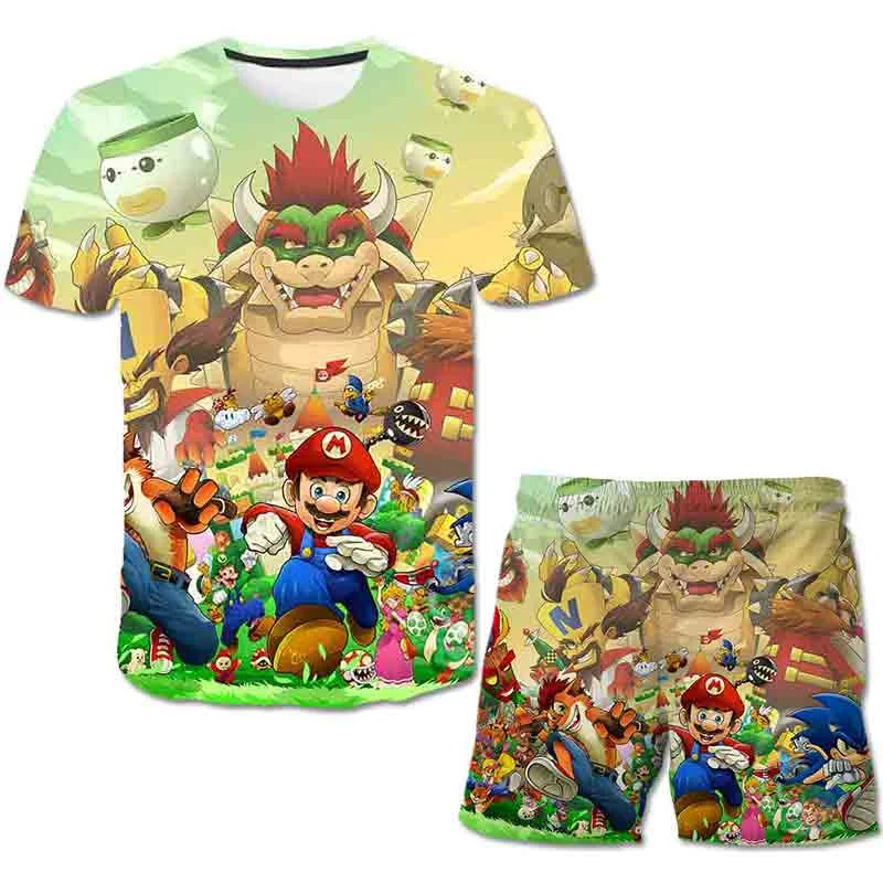 Лидер продаж, Модный комплект из футболки с Марио, футболка, детски...