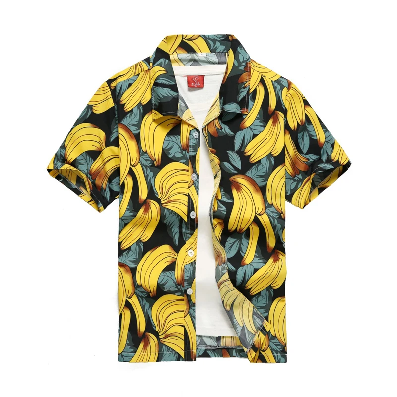 Рубашка мужская с коротким рукавом, Повседневная Свободная пляжная блузка, на пуговицах, праздничный Топ, В гавайском стиле, на лето