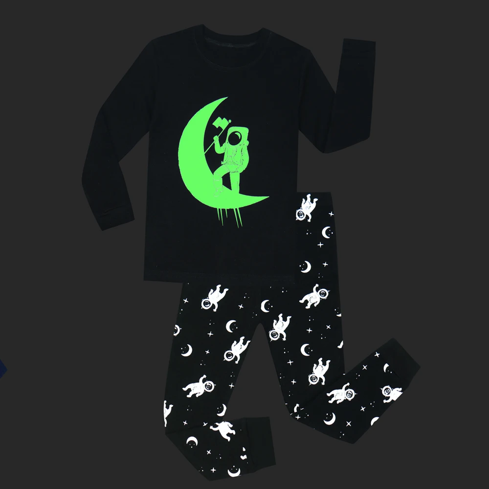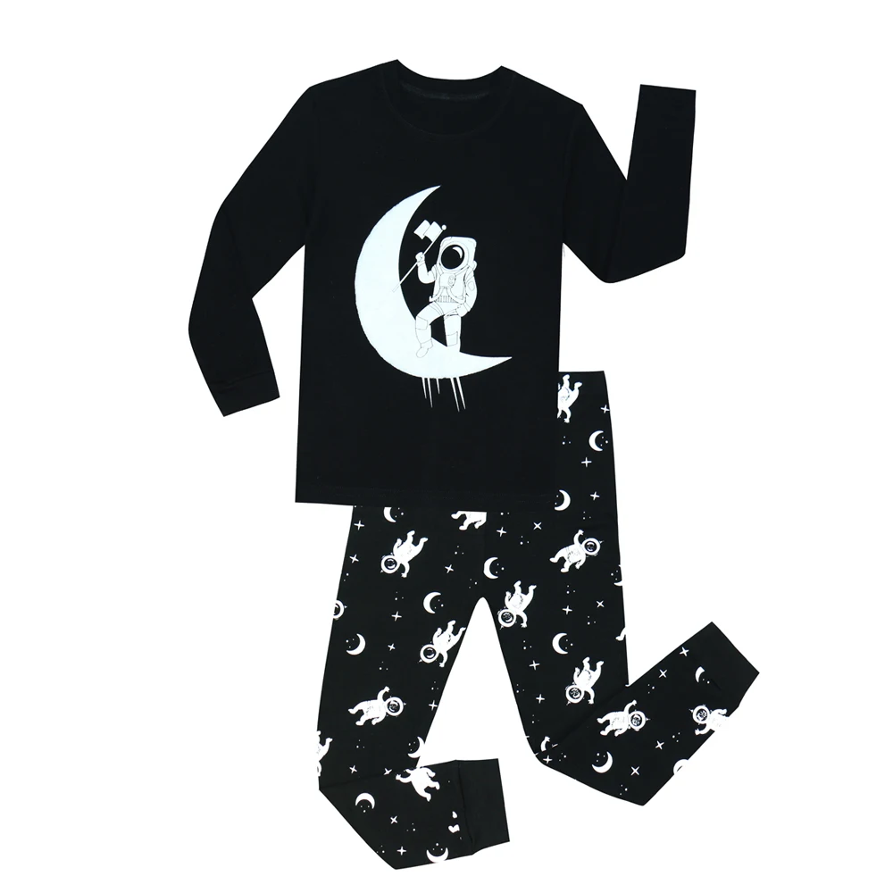 Пижама для мальчиков и девочек, 2021, с рисунком астронавта, светится в темноте
