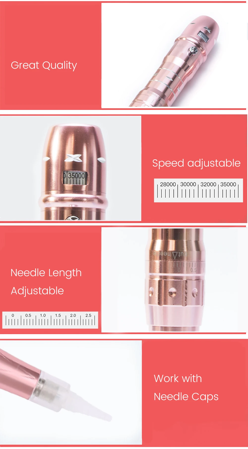 1. Беспроводная Перманентная тату-машина для макияжа2. Варианты цветов: золотой, розовый, золотой3. Скорость: от 28000 до 350004. Игла Длина: Регулируемая от 0-2,5 мм5. Оба работают с кабелем, и Wireless6. Может делать брови, губы, подводки для глаз и маленькие татуировки