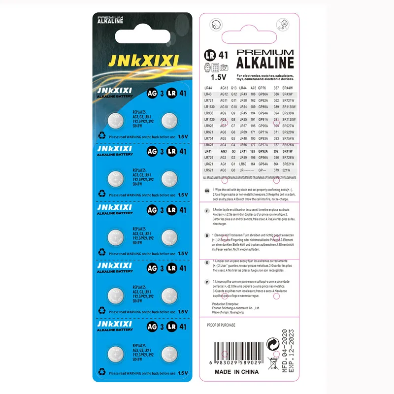 Широкий спектр применения: наша батарея AG3 широко используется в игрушках, фонариках, часах, электронных часах, движениях, электронных подарках, электронных календарах, слуховых аппаратах, калькуляторах, инструментах и метрах, фонари, охранная сигнализация, электронные игрушки, небольшие электронные подарки, маленькое электронное оборудование для камеры и т. д.