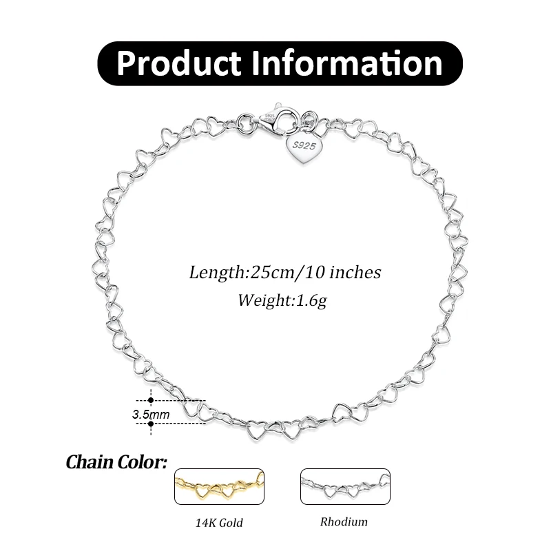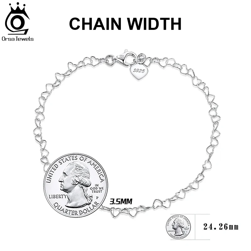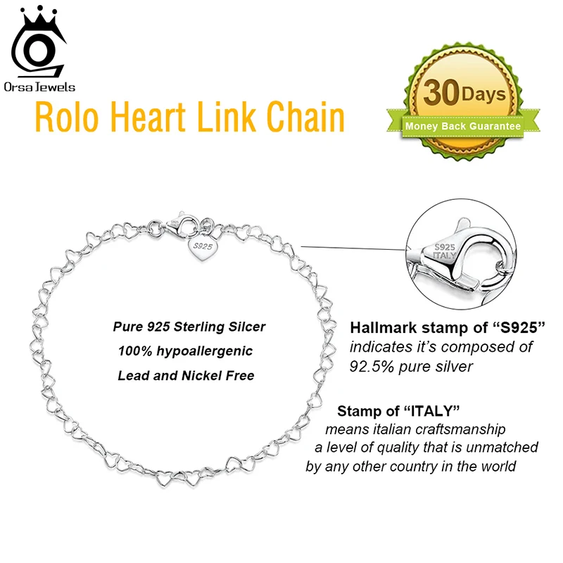 ORSA JEWELS Rolo, цепочка с сердечками, цепочка на лодыжку, браслеты на лодыжке, 925 пробы, серебро, настраиваемый женский браслет, летний браслет на щиколотке, ювелирное изделие, SA10