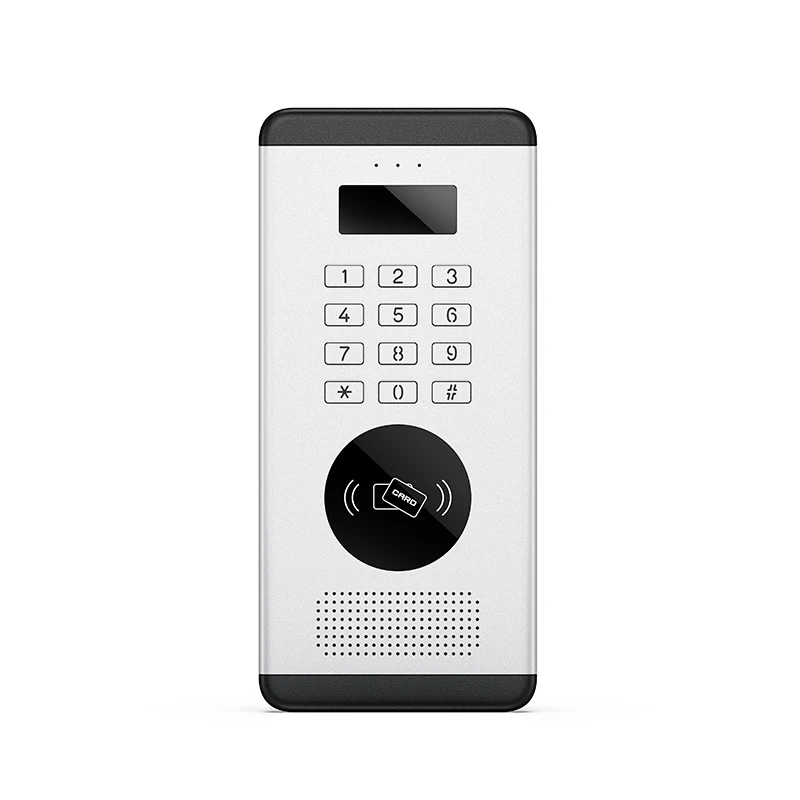 Открытая станция с паролем клавиатуры и кардридером, чтобы открыть дверь.Металлическая панель для наружной станции и АБС-пластик для внутренней трубки.