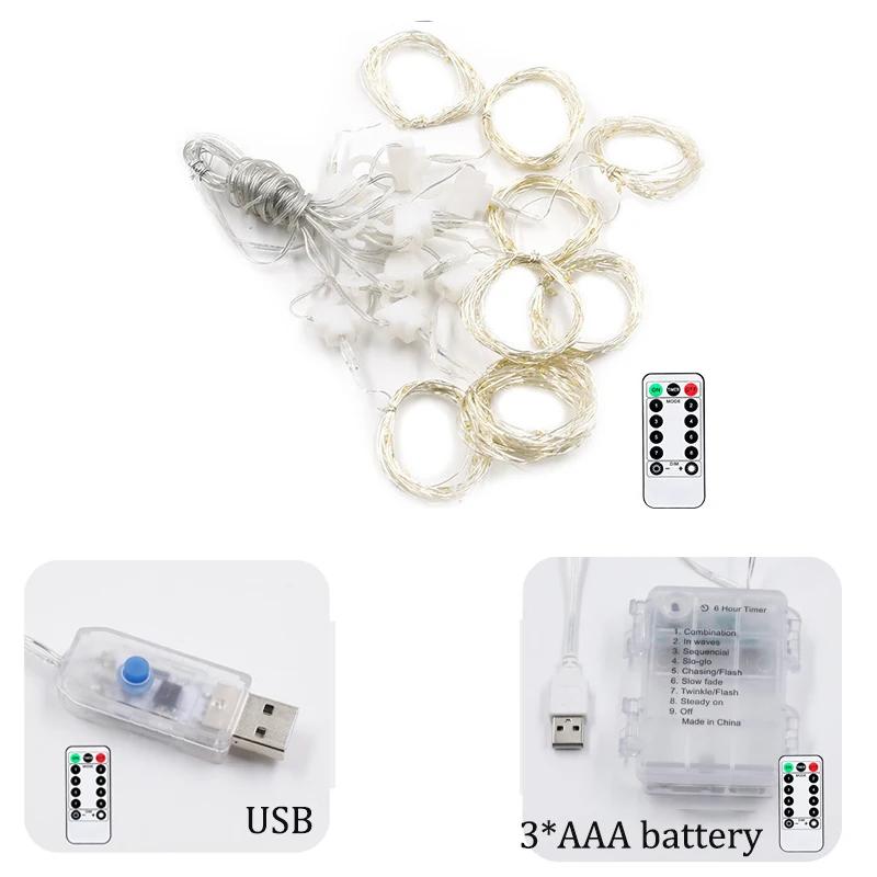 Рождественская гирлянда-занавеска с питанием от USBсолнечной батаре...