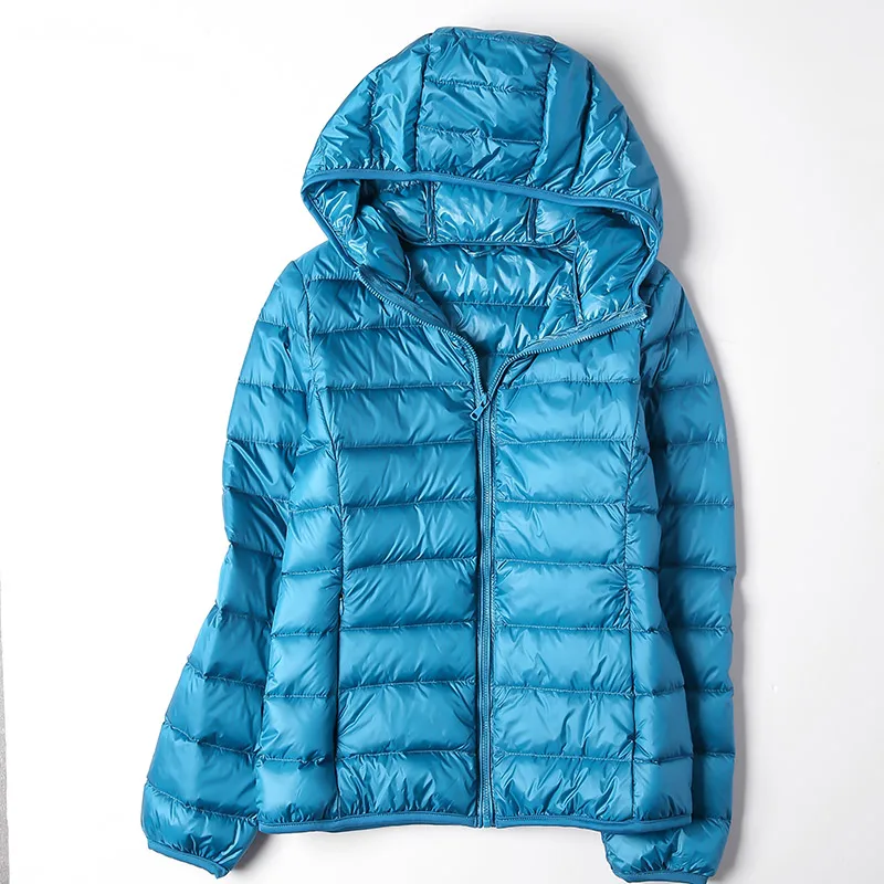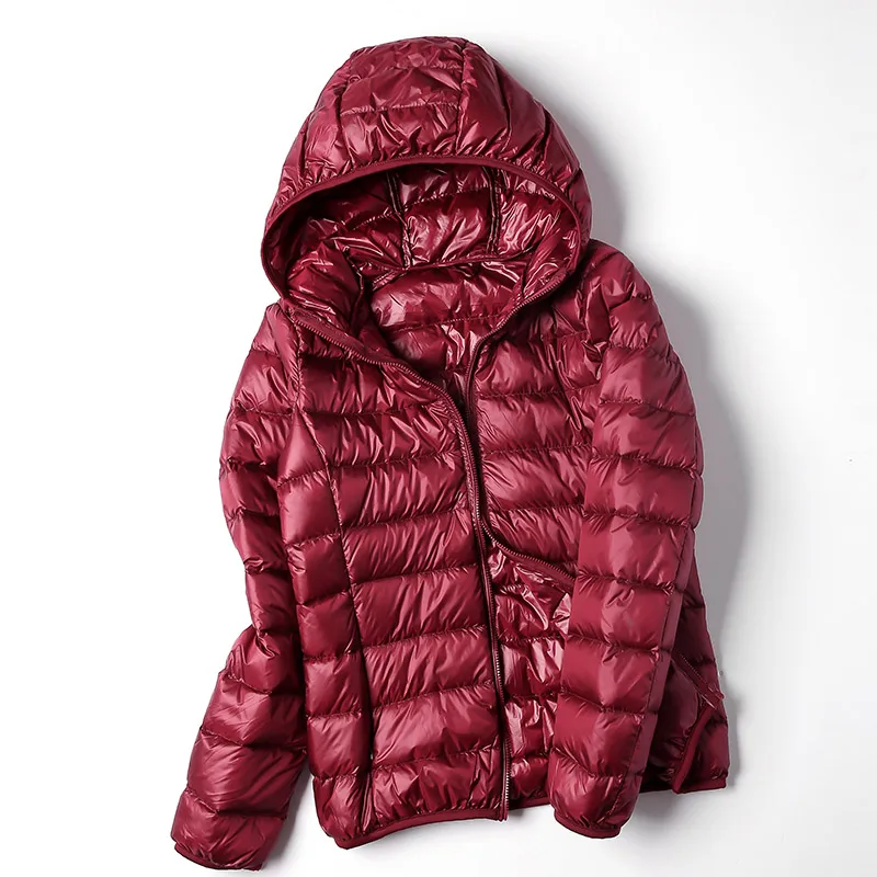 Пуховик женский ультралегкий, тонкий пуховик с капюшоном, на белом ...