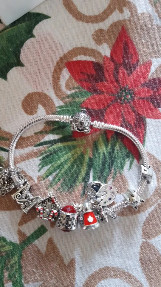 Очень красиво и ярко. Я не знаю, серебро ли это, но у него есть отметки 925. Я увижу это с использованием. В шарме коляски есть логотип бренда и Диснея. В шарме дерева также есть отметка «925 ALE». Браслеты имеют идеальный размер и несколько жесткие. Продавец приложил две очень красивые Подарочные прелести, я очень доволен!