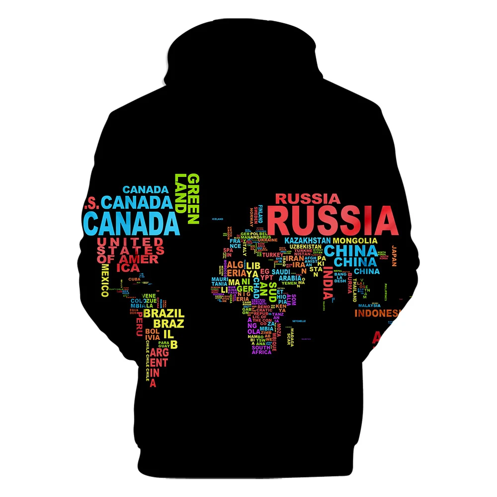 Толстовка МужскаяЖенская с 3D-принтом карты мира, Модный свитшот в ...