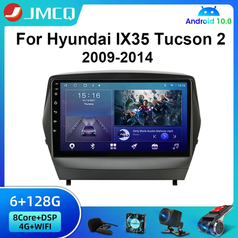 Автомобильный радиоприемник JMCQ Android 10 4G + 32 gдля Hyundai Tucson 2 LM IX35 2009-2015 мультимедийный видеоплеер навигация GPS 2din стереосистемы DSP