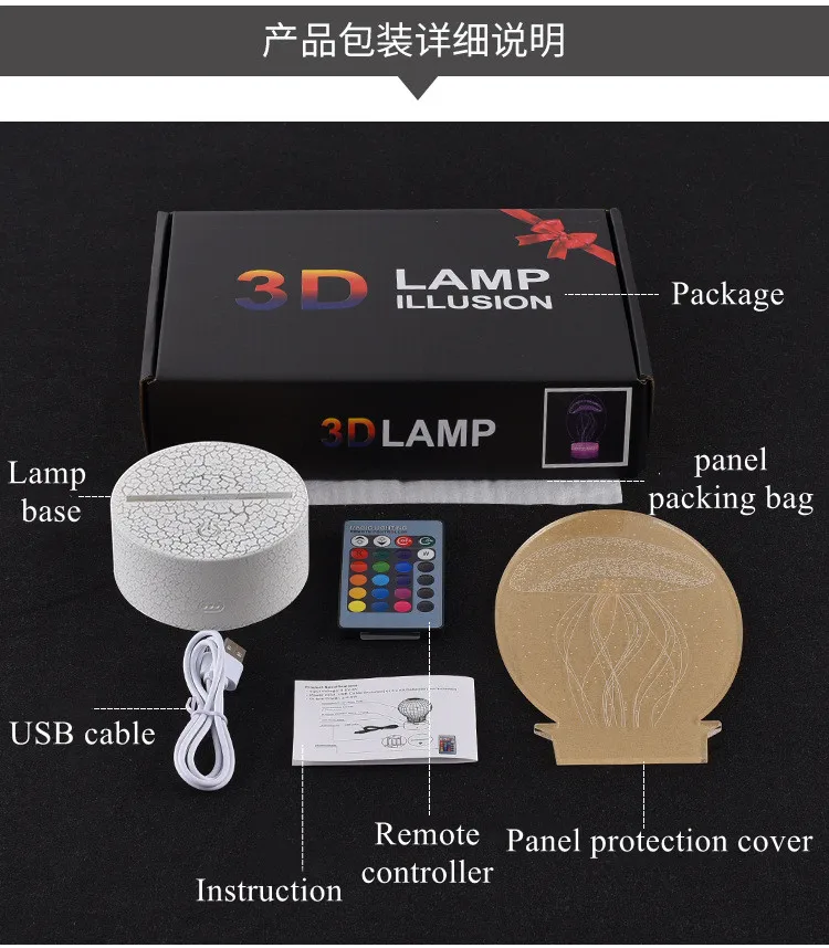 1 * Оптическая акриловая панель1 * Основание лампы ABS, размер: 85*40 мм1 * пульт дистанционного управления (если вы выбираете 16 цветов)1 * кабель Micro USB, длина: 1 м1 * Руководство пользователя