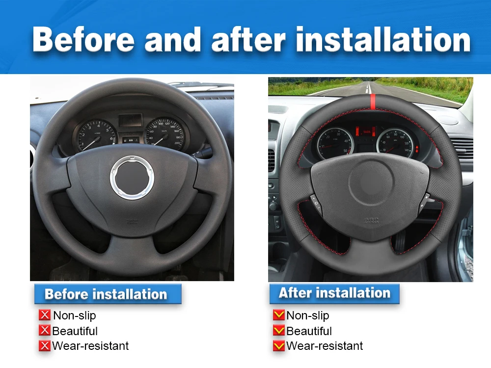 Чехол на руль MEWANT для Renault Clio 2, черная искусственная кожа,...