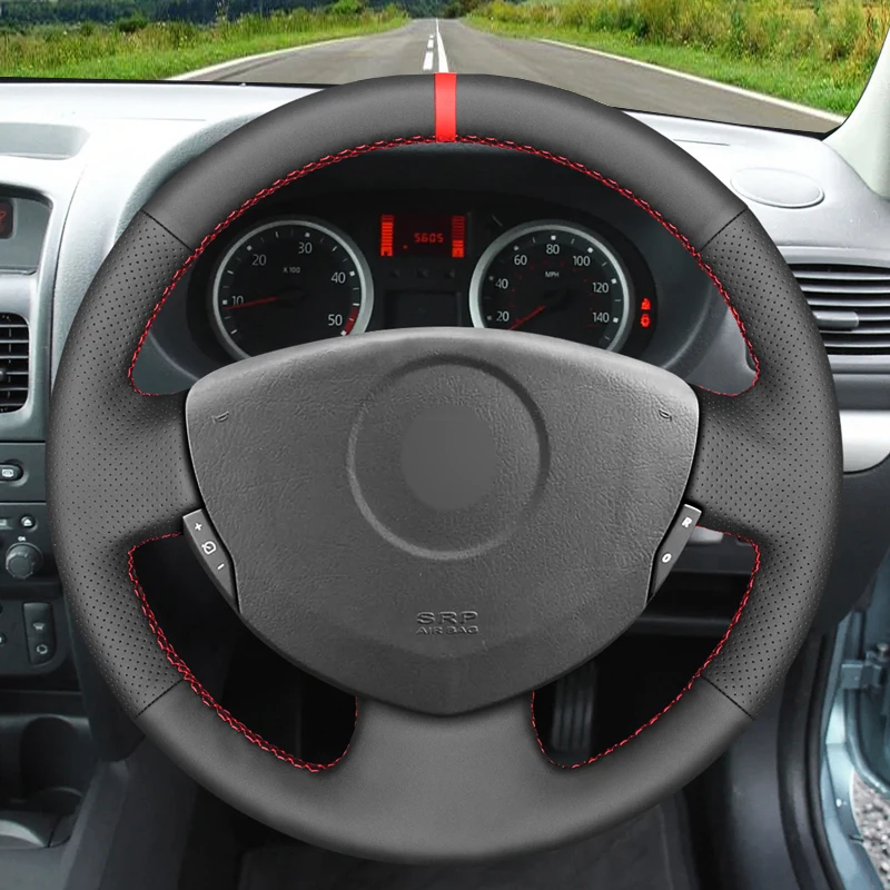 Черная искусственная кожа Чехол рулевого колеса автомобиля для Renault Clio 2 2001-2012 Logan Sandero Symbol Twingo 2 2009-2015