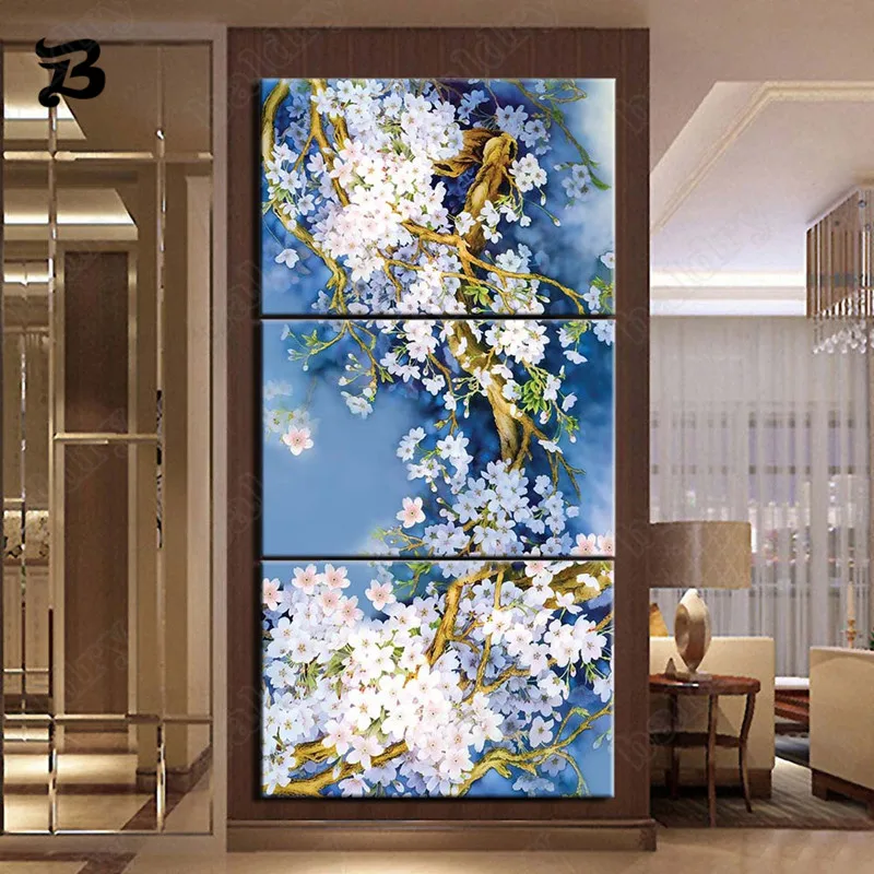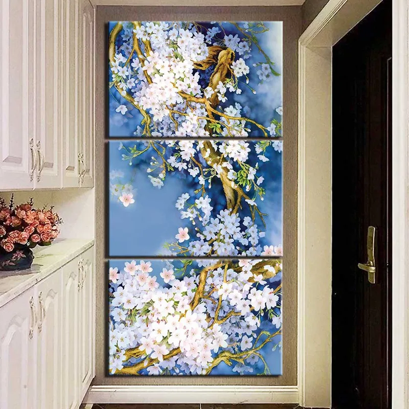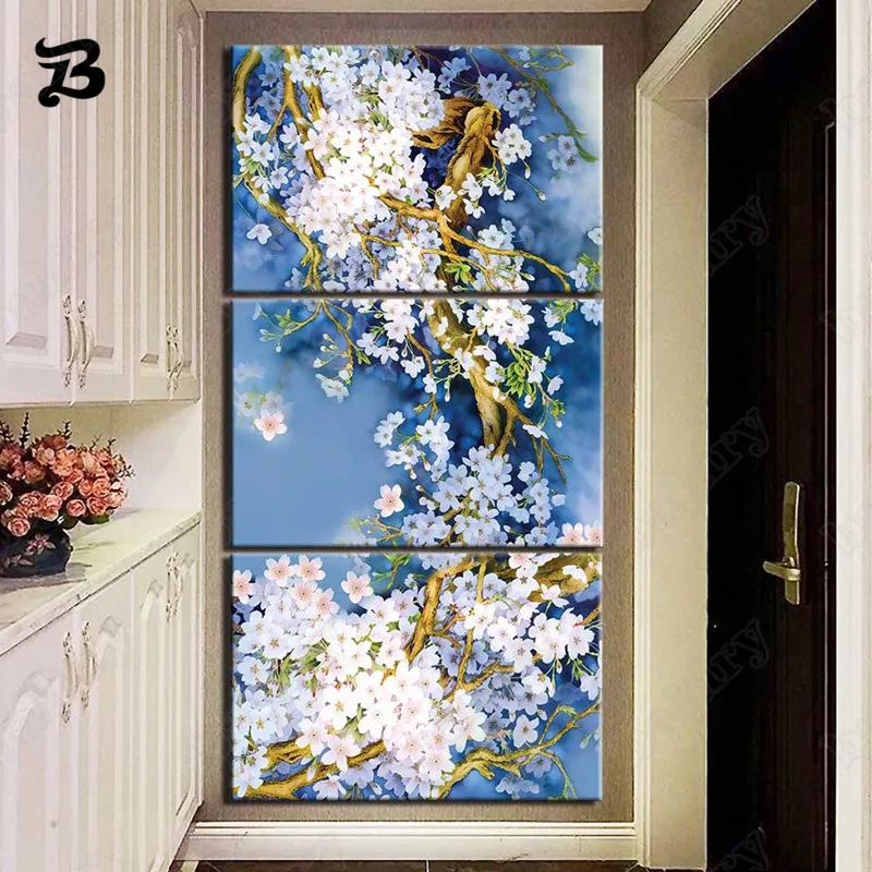 Настенная живопись, 3 предмета, домашний декор, абстрактная Современная Белая акварель, синие цветы, холст, плакаты, настенные картины
