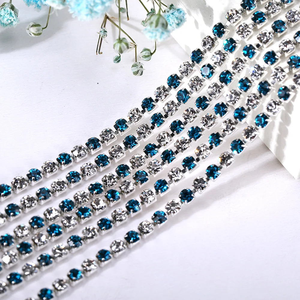 Сиренево-синий 1 м Швейные с украшением в виде кристаллов Стразы цепочкой SS6SS8 смешанных цветов с кристаллами с серебрянной акантовкой, коготь красный лак на стразы отделка DIY Аксессуары для красоты