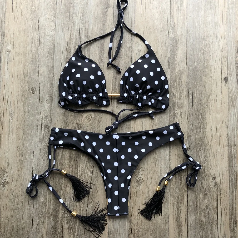 Бикини в горошек с низкой талией, новинка 2021, женский купальник, сексуальный бразильский комплект с лямкой на шее, купальник, пляжная одежда для девушек, купальный костюм, бикини