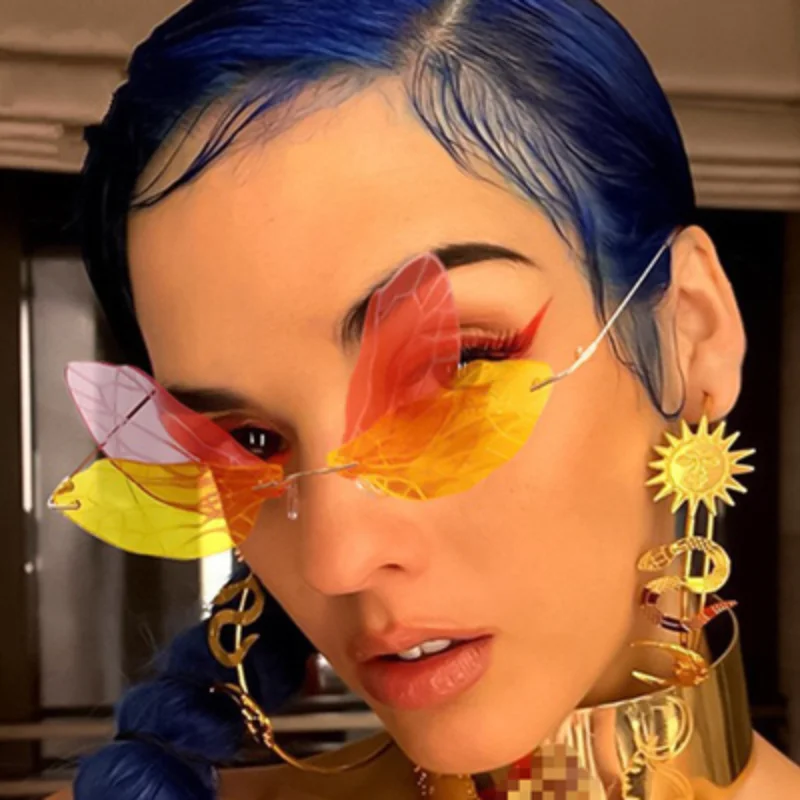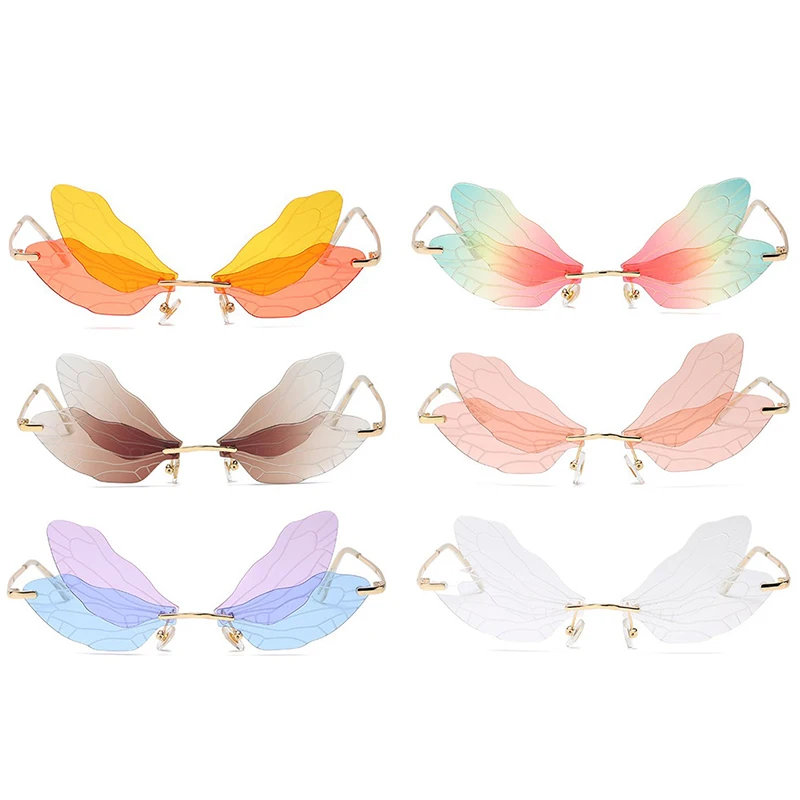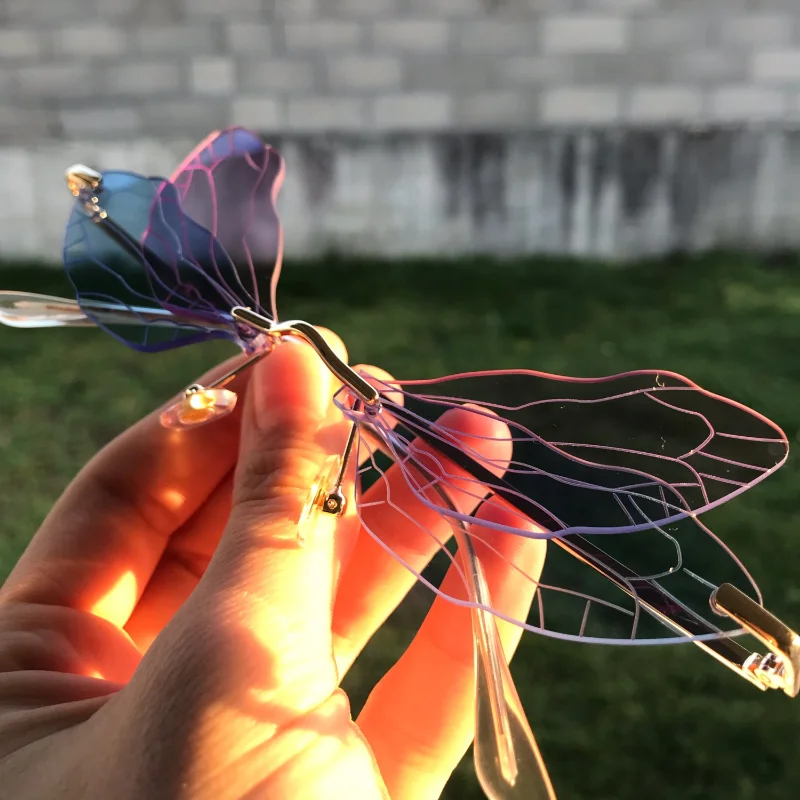 Солнцезащитные очки без оправы UV400 для мужчин и женщин, Модные Винтажные, с крыльями стрекозы, с прозрачными линзами, розовые, 2021