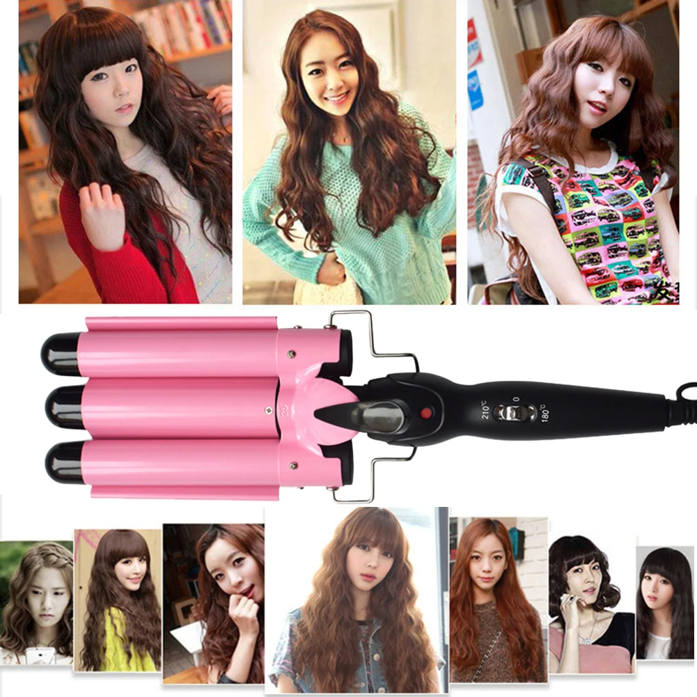 Тройная волнистая электрическая плойка для завивки волос с тремя тр...