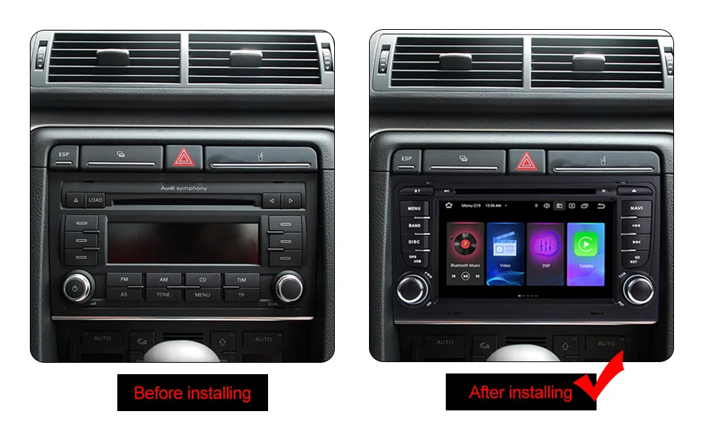 > Автомобильный мультимедийный плеер Подходит для:Для Audi A4 B8 B7 B6 S4 RS4 B7 SEAT ExeoНовая версия Android 11Радио IC 7708, усилитель мощности IC 7388, встроенный WIFIВстроенный беспроводной carplay + проводной автоматический DSP RDS