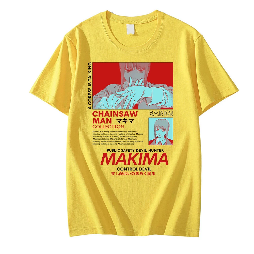 Футболка с принтом бензопилы, макима, японское аниме, модные мужские и женские футболки с графическим рисунком, детские футболки для мальчиков и девочек в стиле хип-хоп, топы, манга, футболки