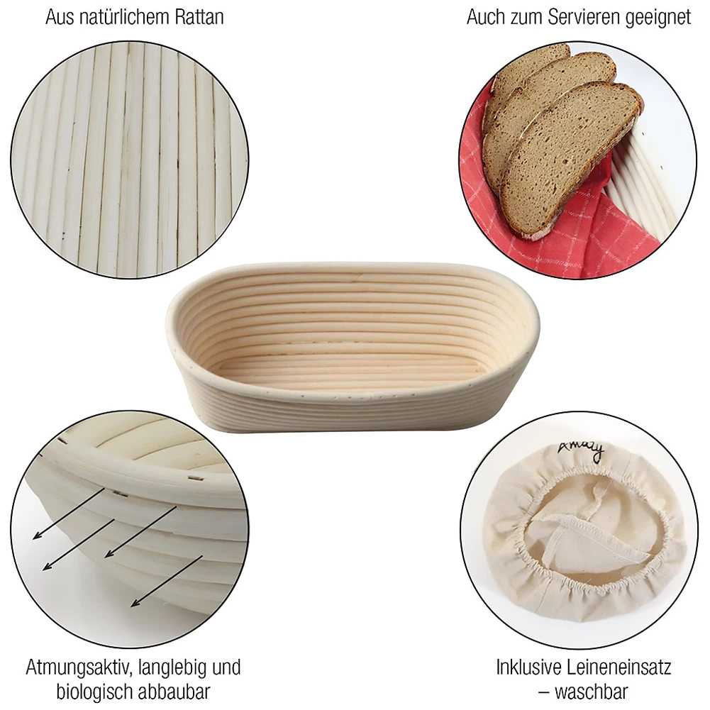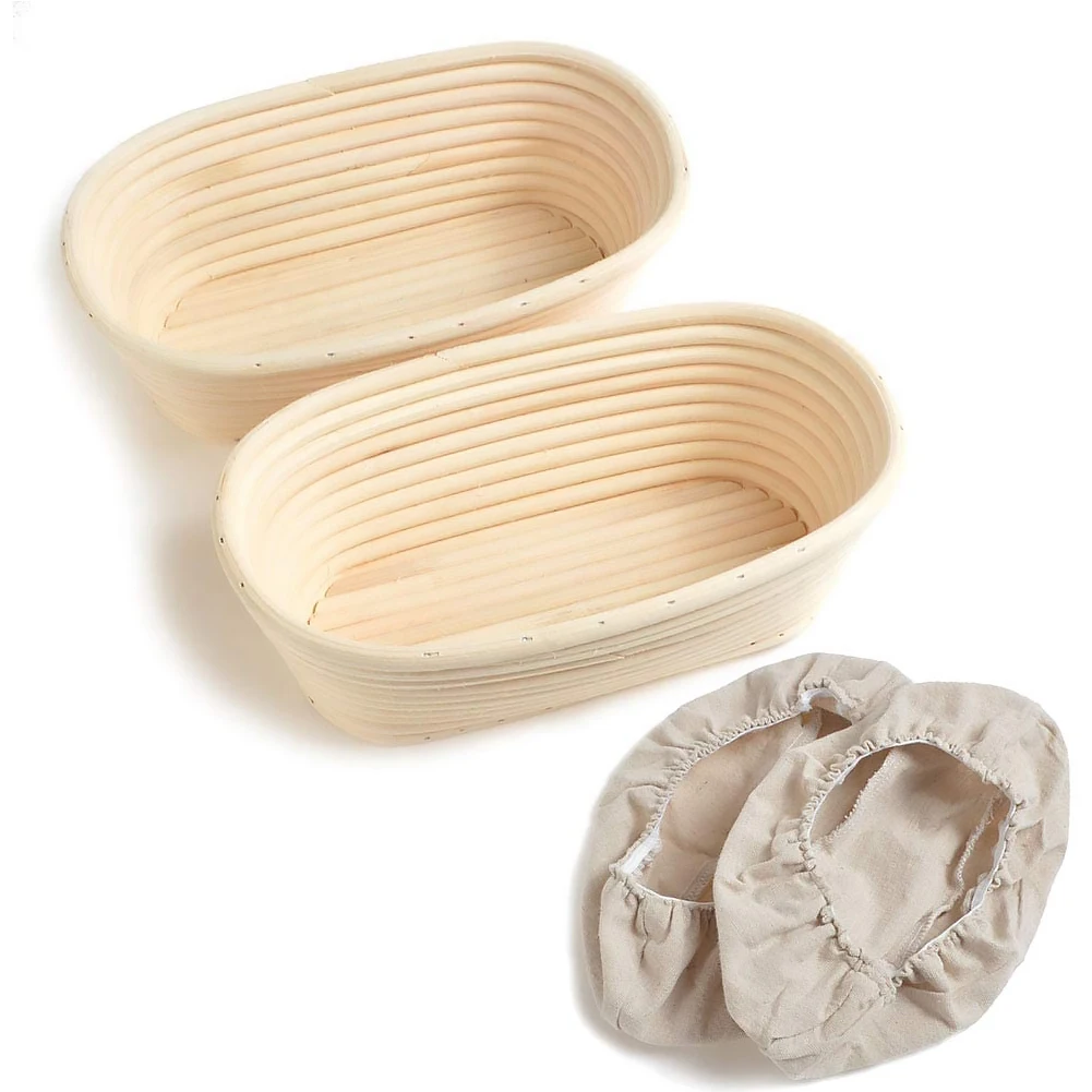 Корзина из ротанга для теста, выпечки, хлеба, 2 шт., овальная, корзины для ферментирования