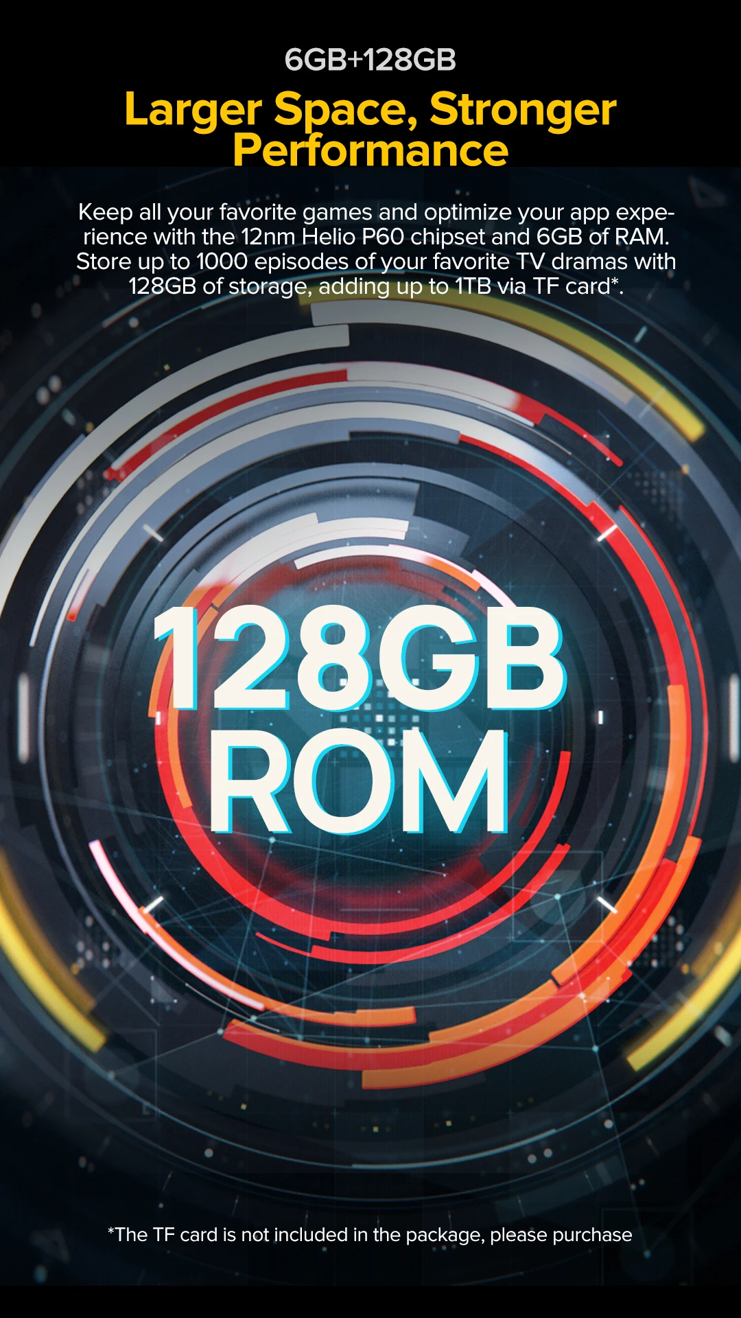Больше места, более высокая производительностьХраните все ваши любимые игры и оптимизируйте свои приложения с чипсетом Helio P60 12 нм и 6 ГБ оперативной памяти. Храните до 1000 серий ваших любимых ТВ-драм с 128 ГБ памяти, добавляя до 512 ГБ с помощью tf-карты *.* Tf-карта не входит в комплект, пожалуйста, приобретайте ее отдельно.