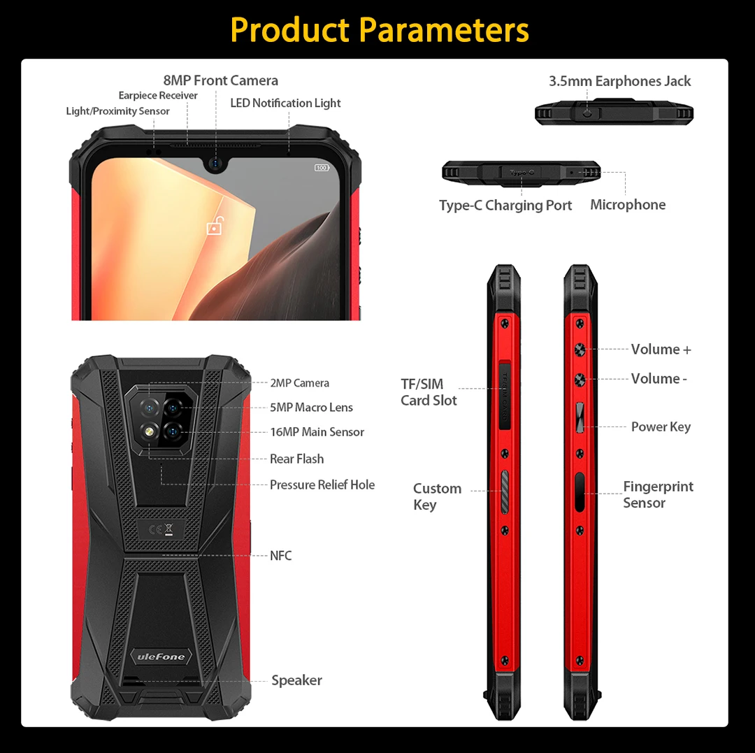 Ulefone прочный телефон устойчив к воздействию воды и пыли. Он был протестирован с номиналом IP68 в условиях под контролем лаборатории в соответствии со стандартом IEC 60529 (максимальная глубина 1,5 метров до 30 минут). Защита от брызг воды и пыли не является постоянными условиями, и сопротивление может уменьшиться в результате нормального износа. Не пытайтесь зарядить влажный телефон; Инструкции по очистке и сушке см. В руководстве пользователя. Повреждение жидкости не покрывается гарантией.
